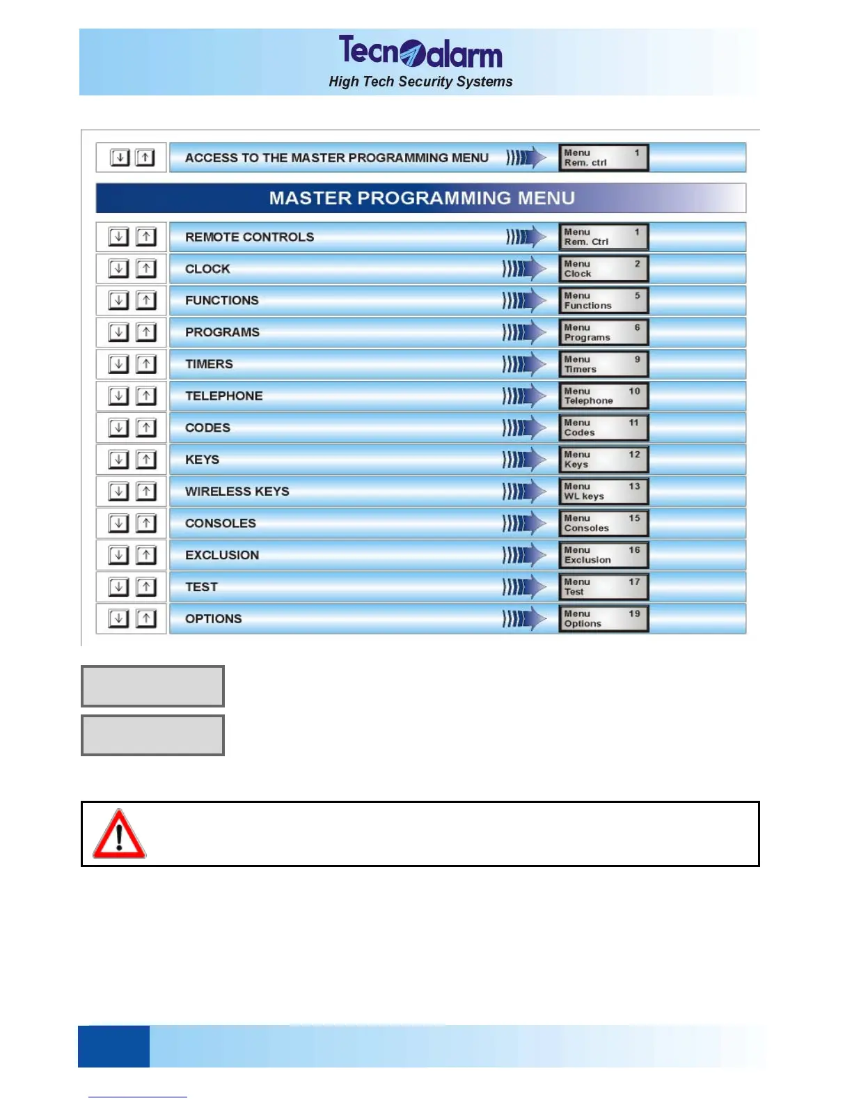 MASTER PROGRAMMING MENU