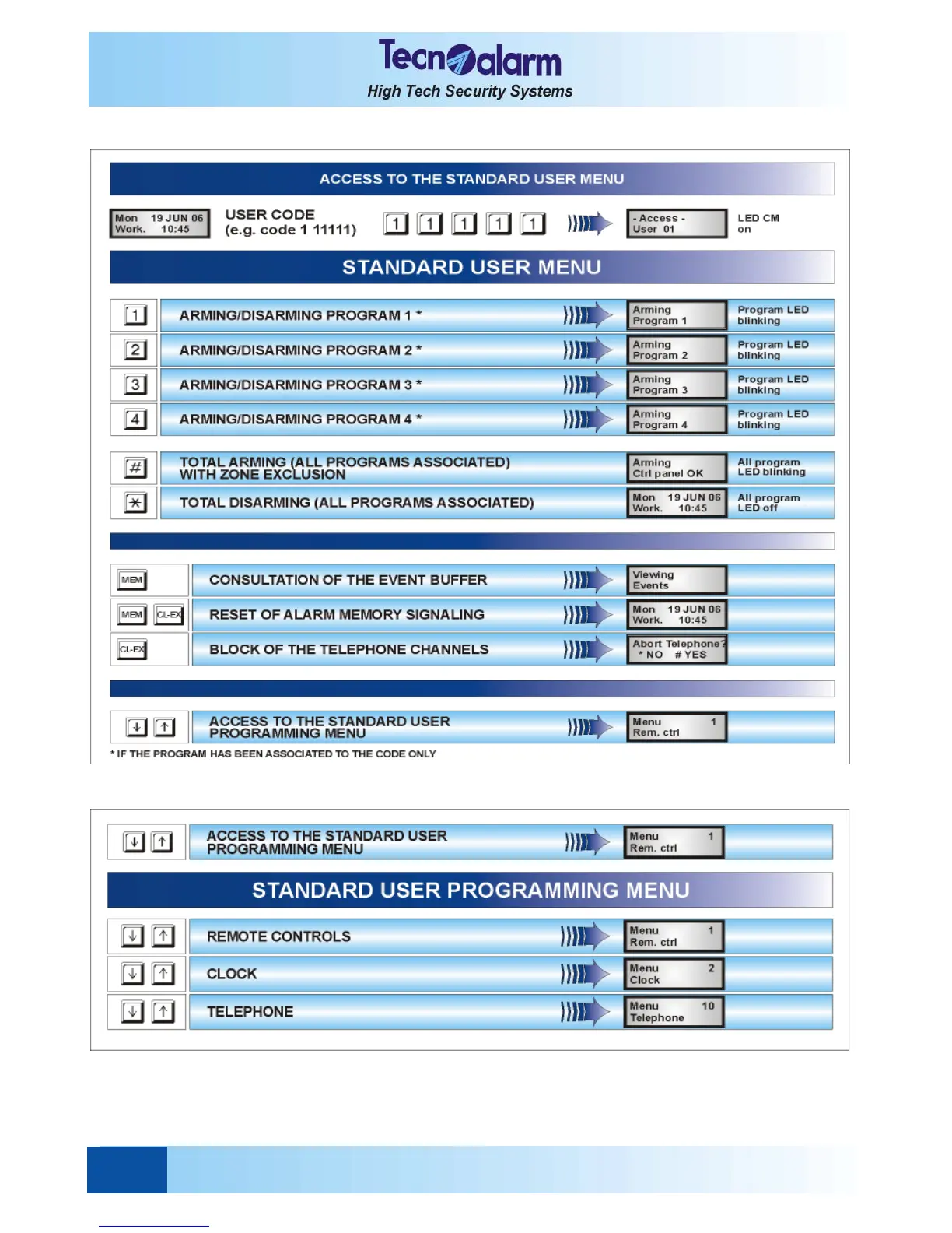 Technoalarm TP4-20 - Standard User Menu