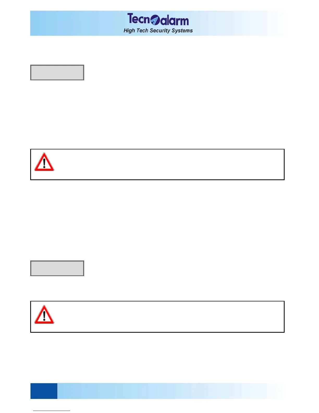 The alarm is released if 32 keys are pressed without entering a valid code. In case of false code