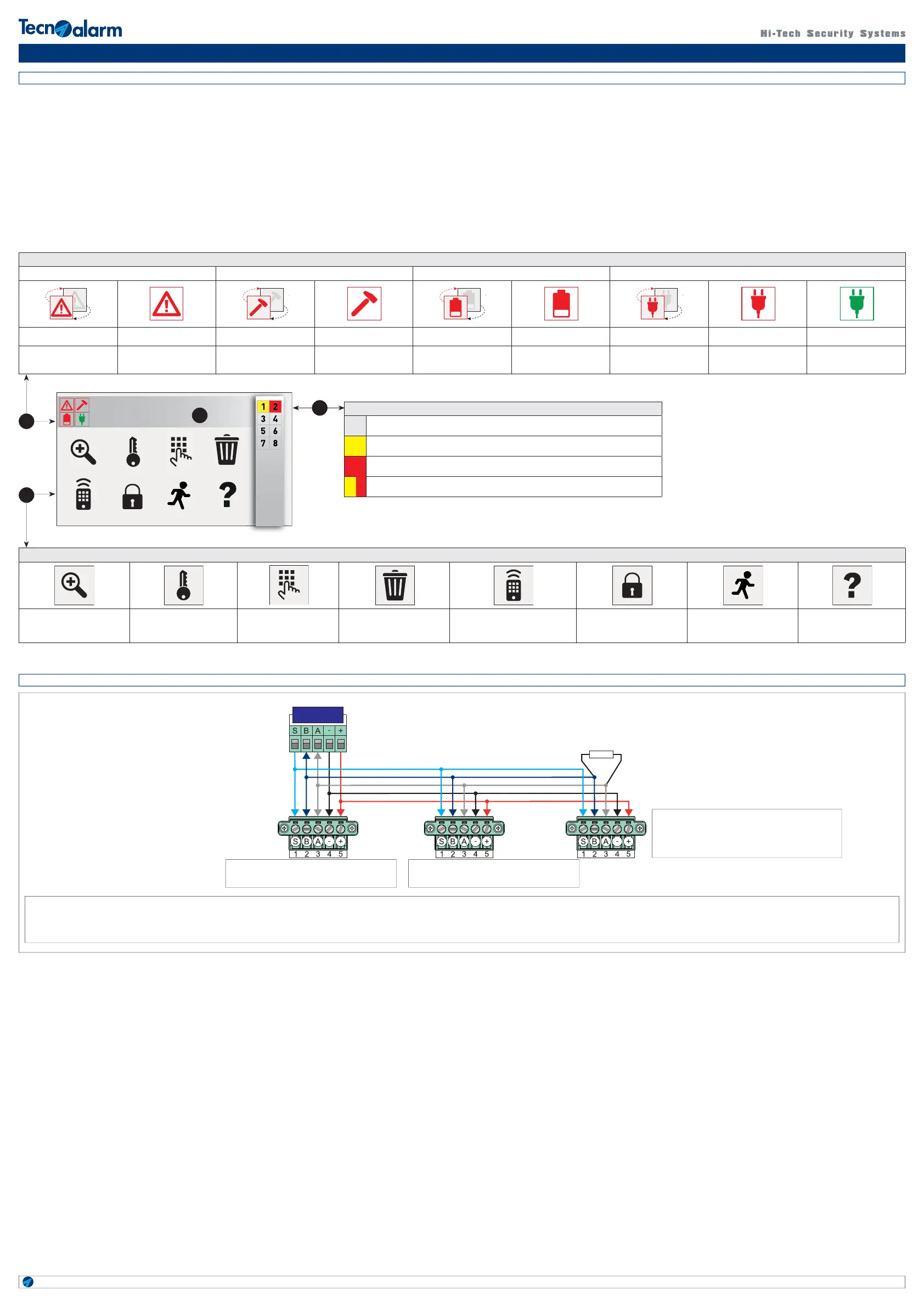 the stand-by function of the display and run the Hardware Coherence Control of the Tecnoalarm software. / N.B. La consola se debe conectar a la línea serial RS485 de la central utilizando un cable con un diámetro apropiado en función de la longitud de la línea serial,