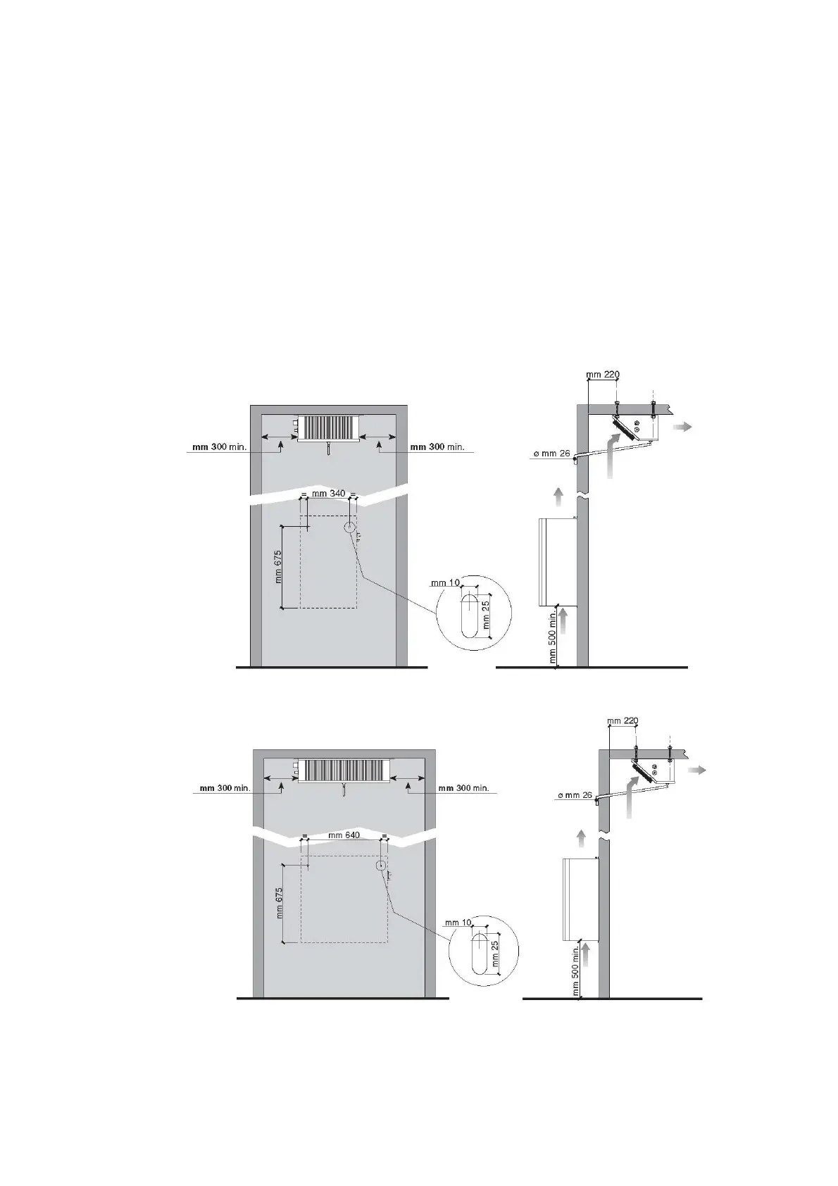 espaces libres minimums pour l’ouverture de la machine.