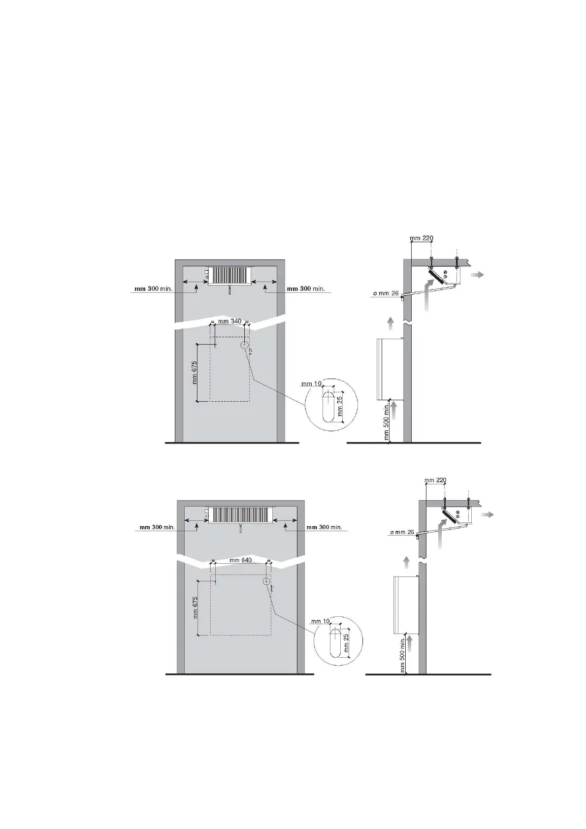 B) Luego realice los agujeros en el techo de la cámara respetando la distancia de la pared 220 mm
