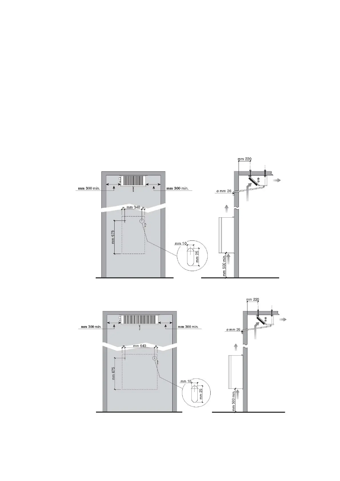 B) Eseguire i fori sul soffitto della cella rispettando la distanza dalla parete minimo 220 mm.