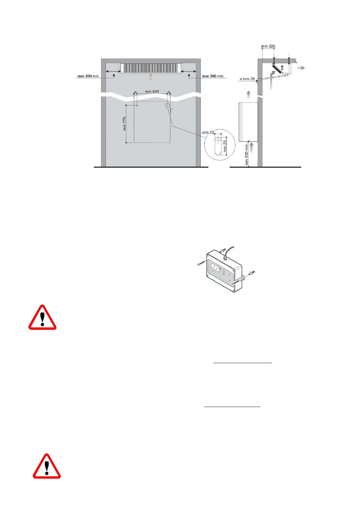 Fissare il fondo del pannello remoto alla parete prescelta, utilizzando i fori esistenti,
