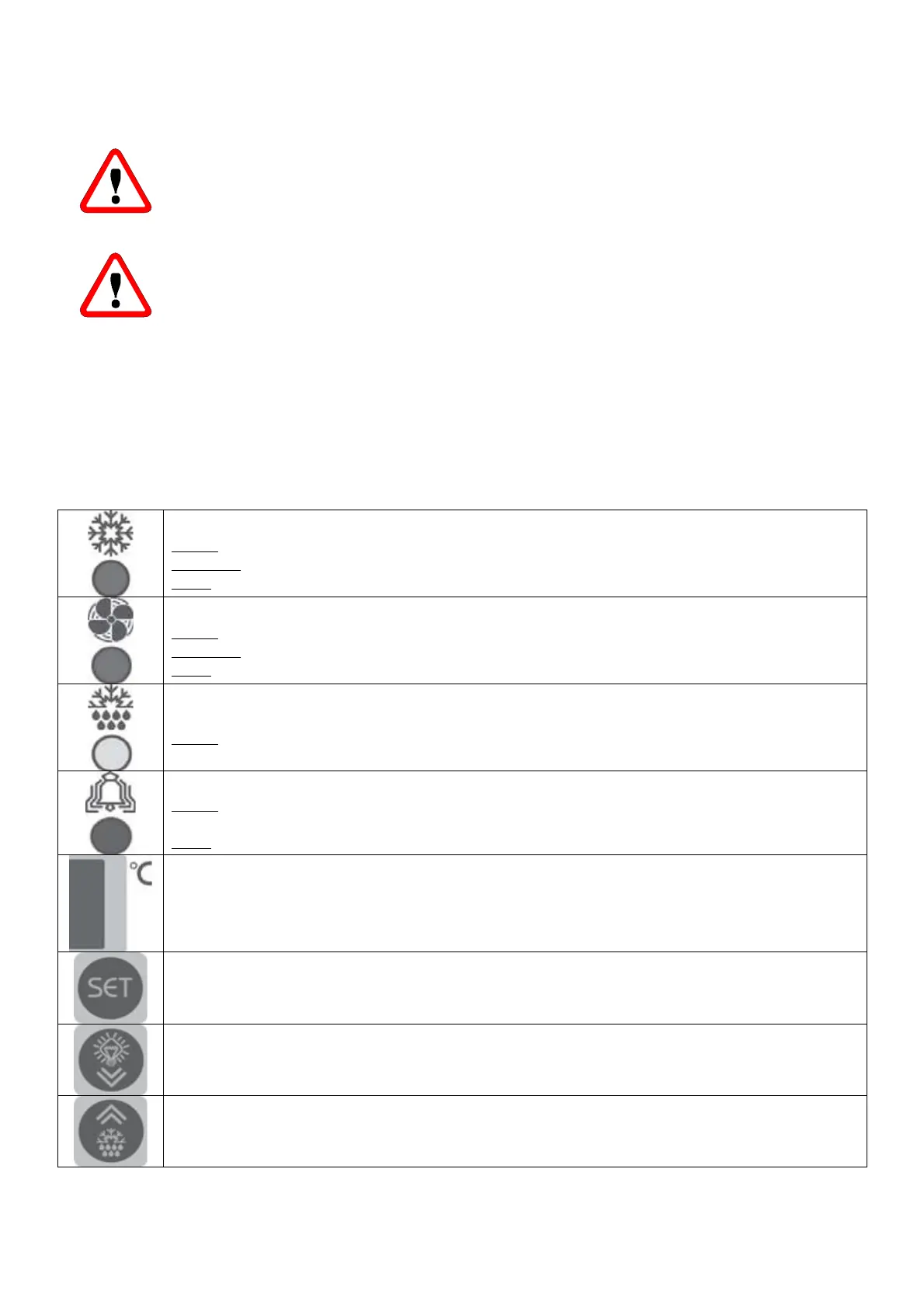 more than 5 seconds it enables manual defrost to be carried out.
