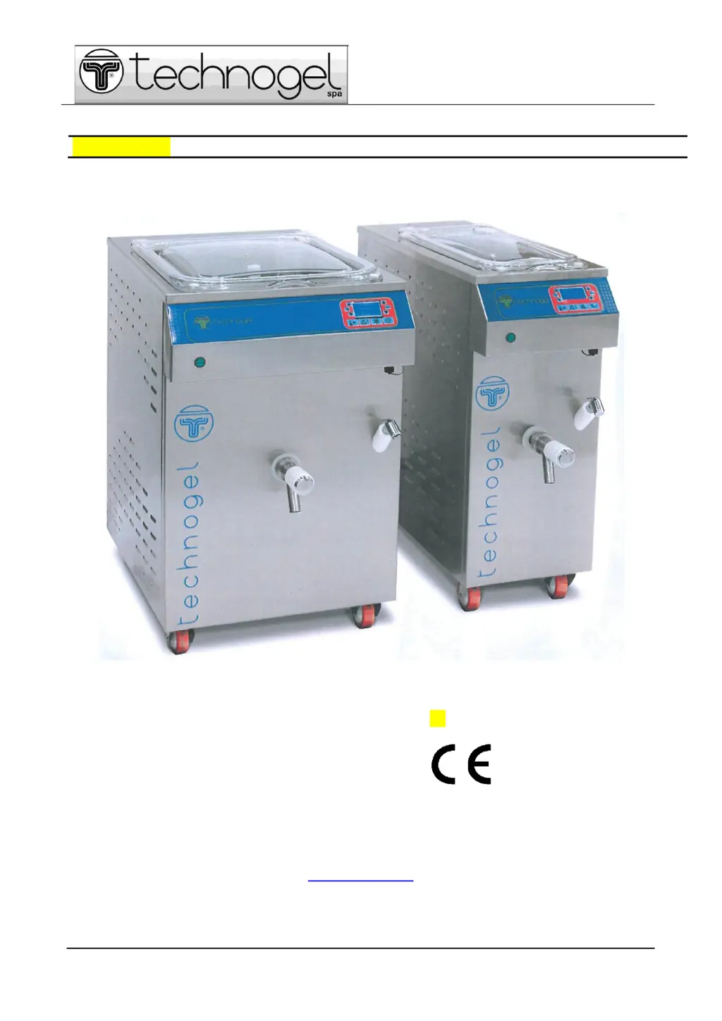 If the Technogel Commercial Food Equipment compressor starts but stops almost immediately and the display shows “E06 + P MAX”, it's likely due to a pressure switch intervention caused by cooling water flow interruption. You should check if the water tap is open and ensure the water supply line is not obstructed. If the problem persists after these checks, you should seek Technical Assistance.