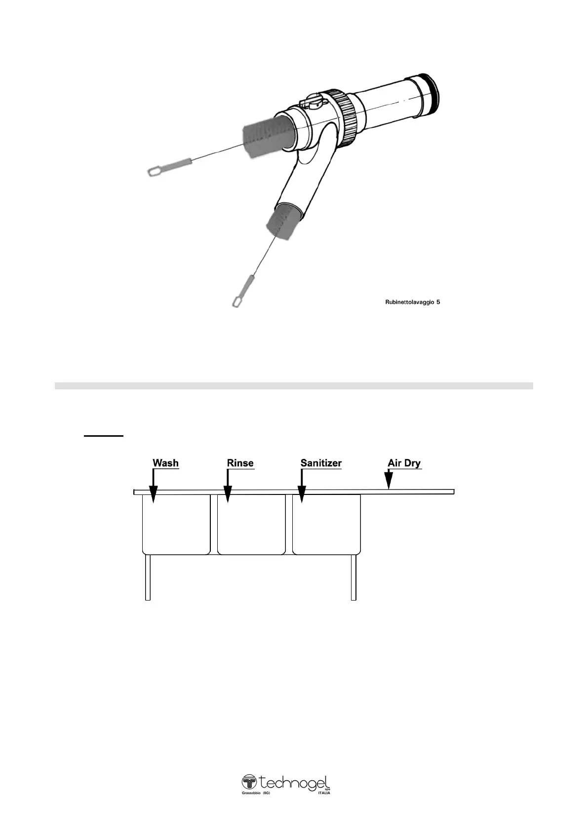 2) Use the three-bowl sink to wash, rinse and sanitize all the disassembled parts. For sanitizing use acid