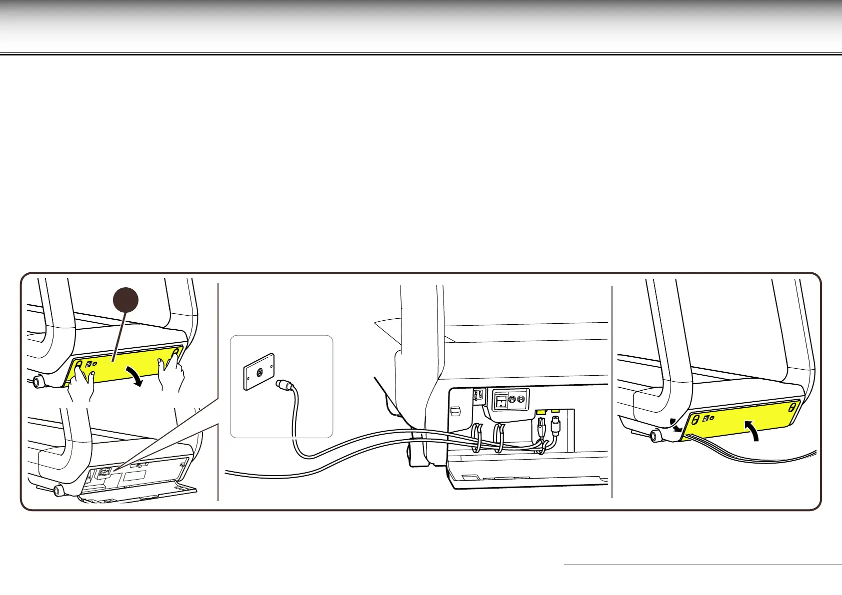 Fix the cable into the channel provided using the cable clamps supplied. Close panel (A) again, threading the cables through the slot provided.