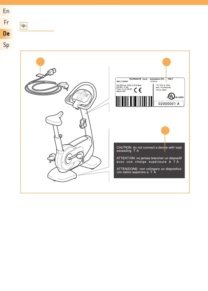 E - Das Etikett, das auf dem Netzkabel angebracht sein kann, enthält die