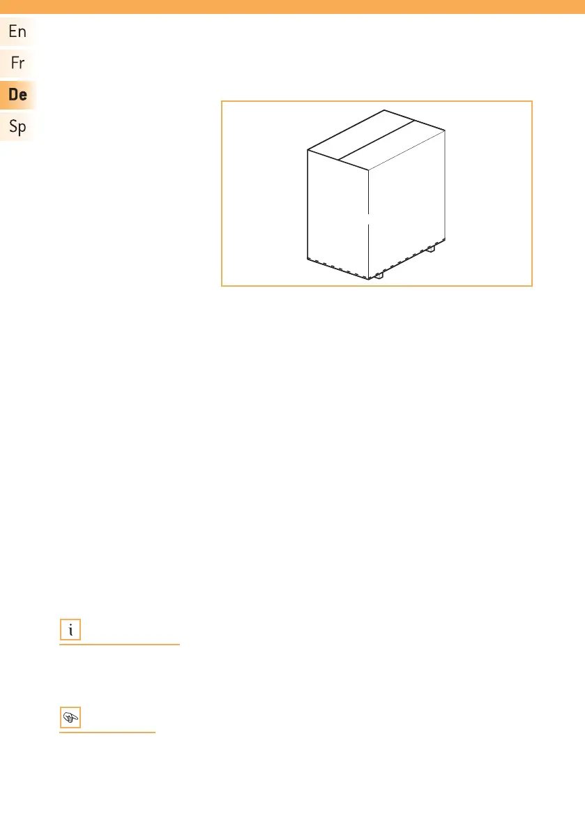 entfernt werden, mit denen der Außenkarton an der Palette befestigt ist; heben