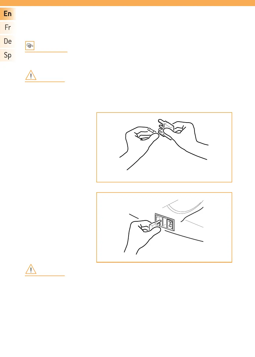 Before changing the fuses turn the equipment off by switching the