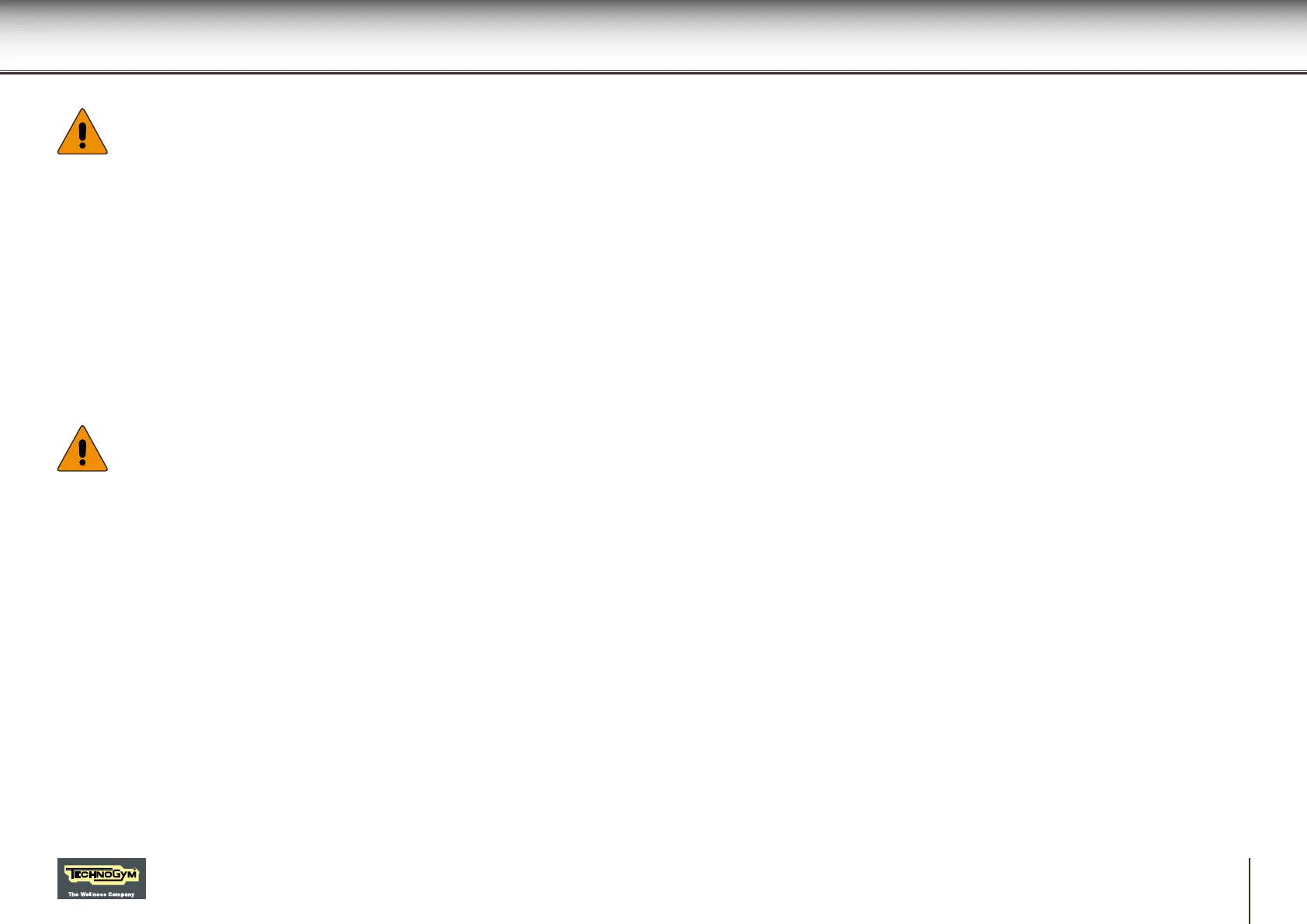 For maintenance actions not described in this manual, call in the Technogym Technical Service.