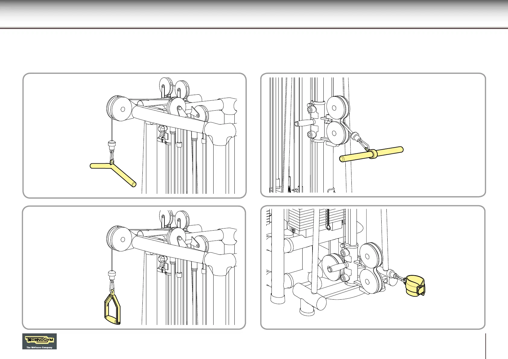 Below are just some of the exercises it is possible to perform with the product, and some examples of installation of Technogym accessories.