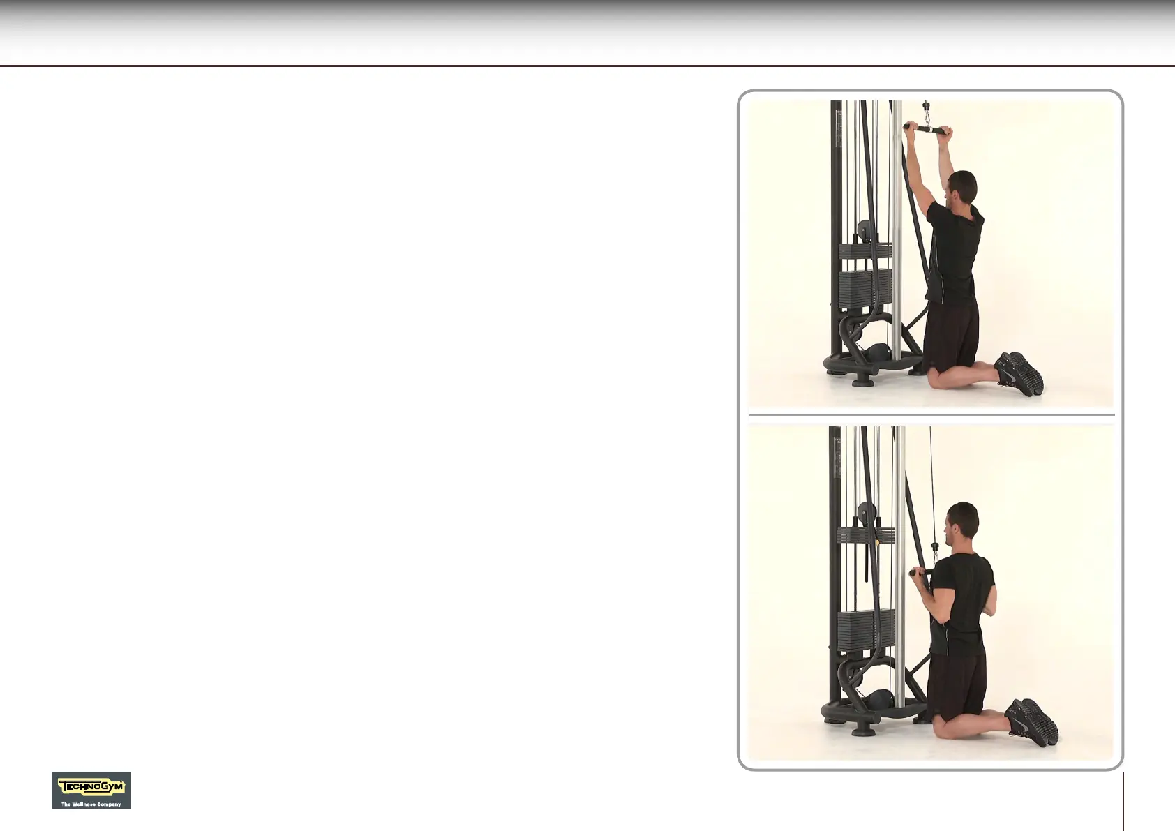 Kneel in front of the weight pack and grasp the bar with a reverse grip and arms outstretched.