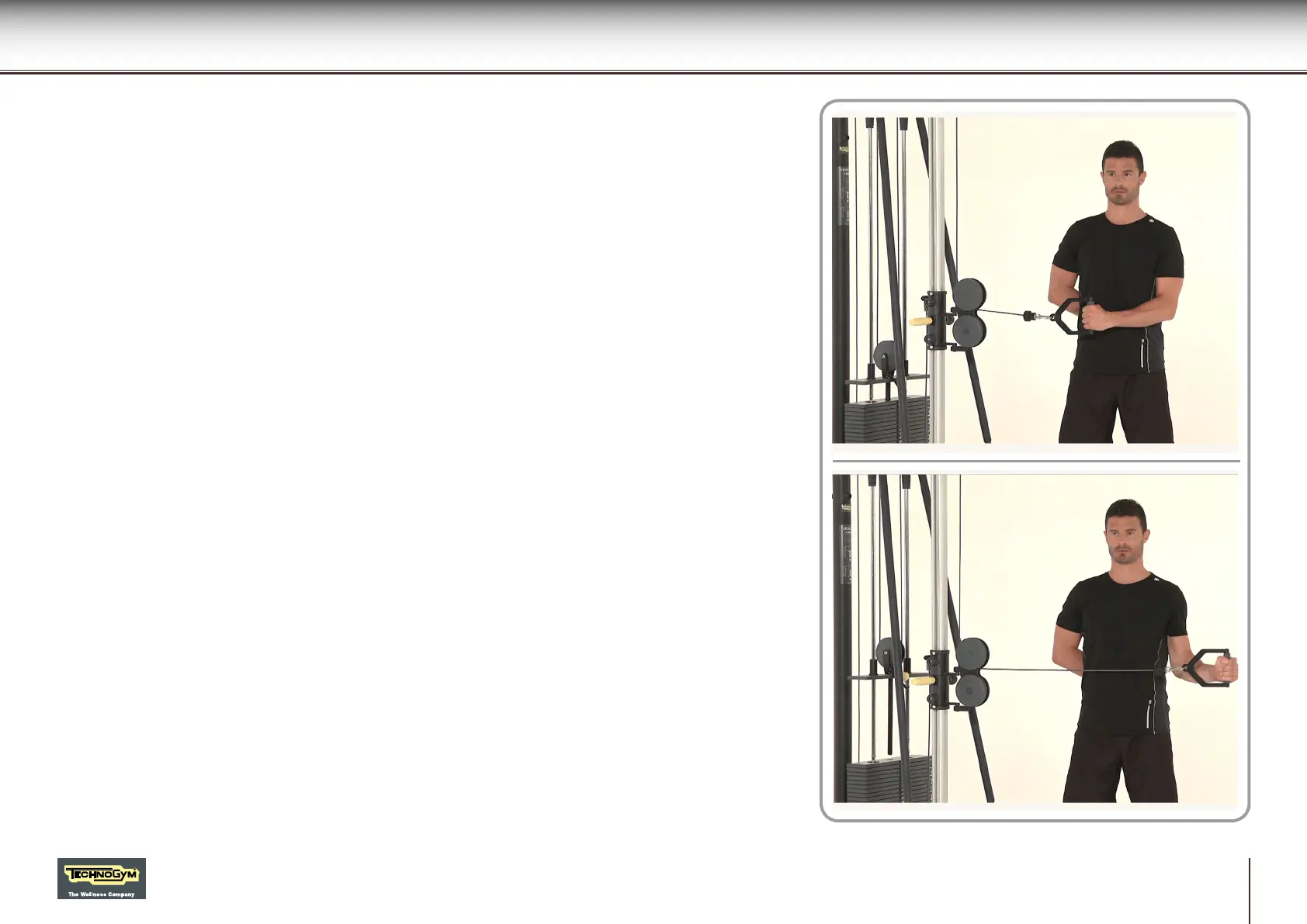 Stand with the side to be exercised away from the weight stack, elbow at your side, arm bent