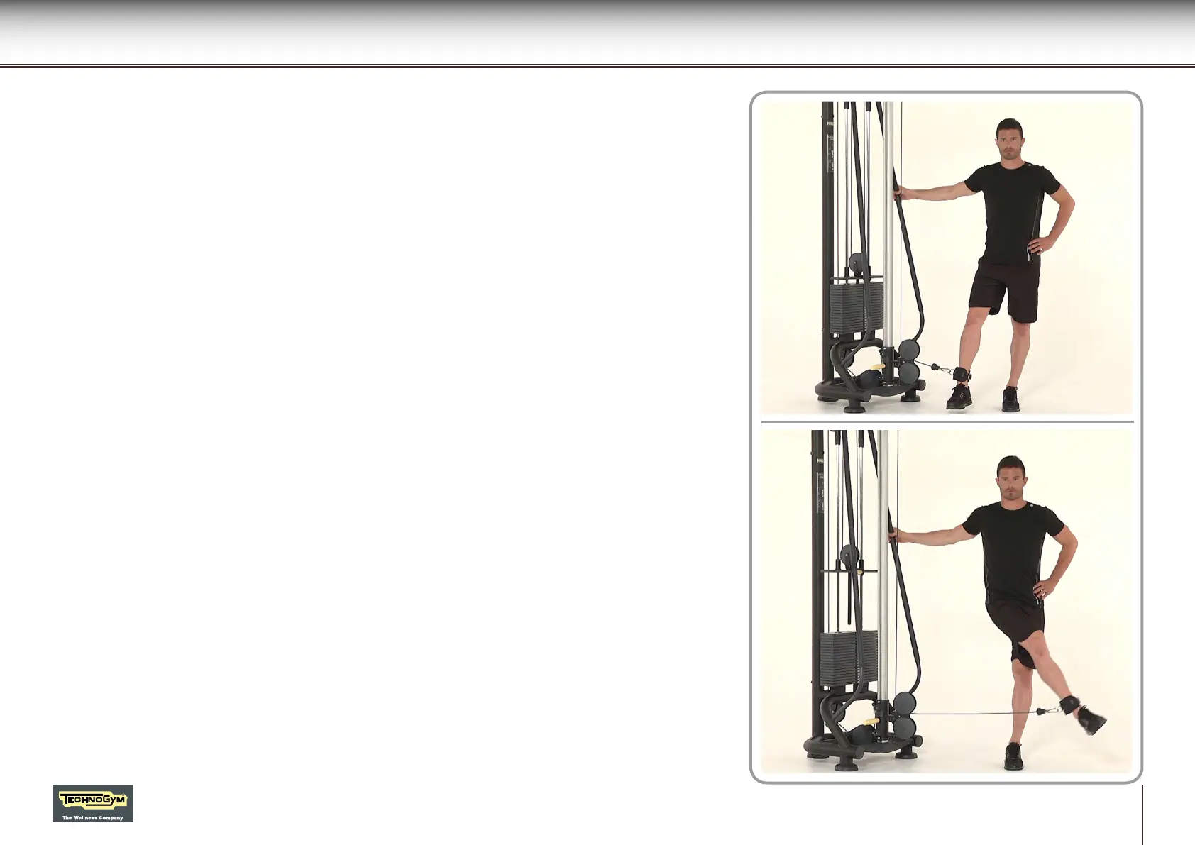 Stand with the side to be exercised toward the weight stack. Hold your leg outstretched and