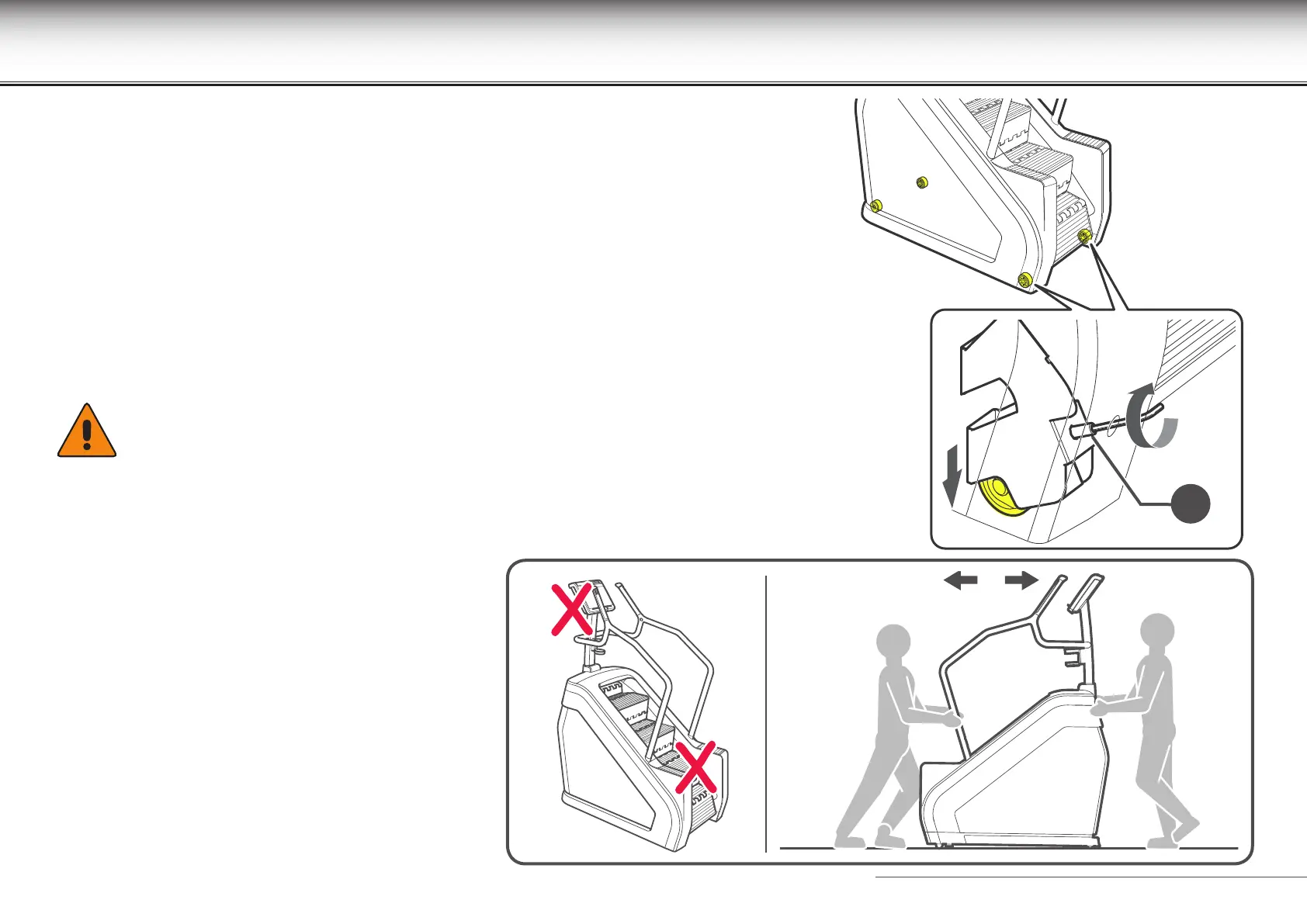 Do not grip the steps or the control panel when lifting or moving the equipment.