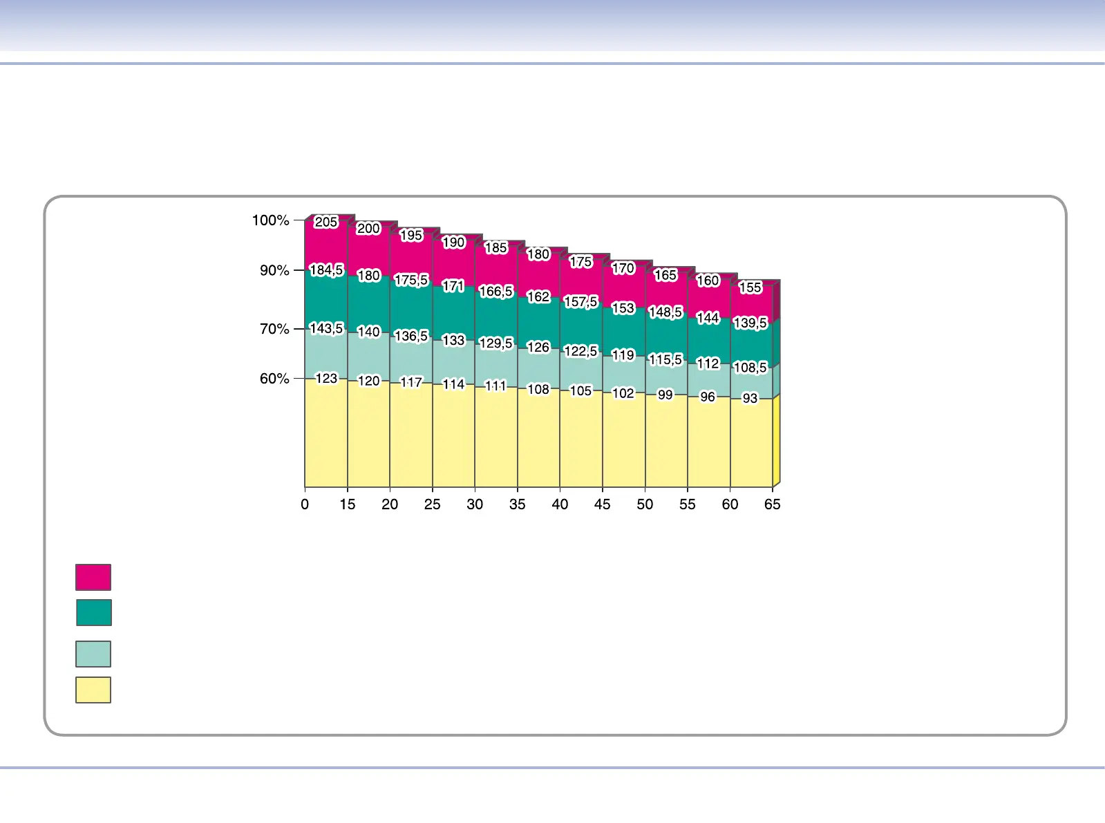 The following table shows the optimum heart rate levels in relation to age and the goal to be achieved. Theoretical maximum