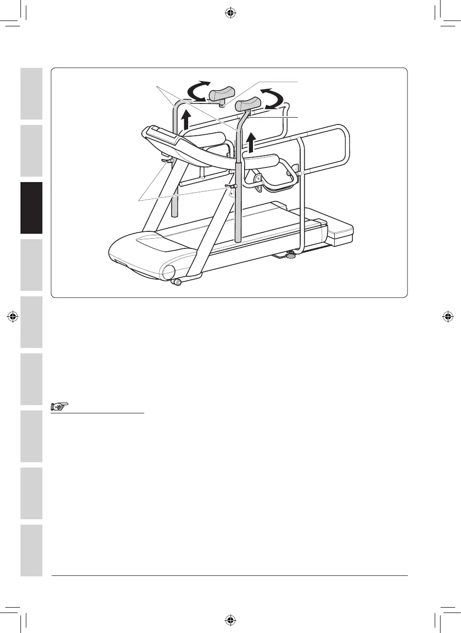 Pour régler sur le plan horizontal les supports brachiaux (F), desserrez la vis (H); le