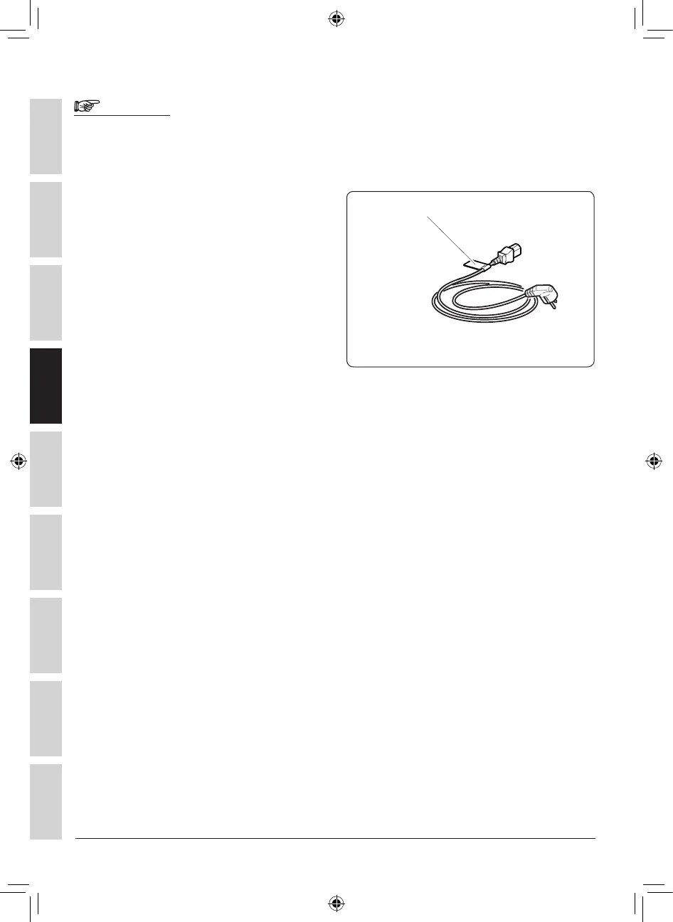 F Das Etikett, das auf dem Netzkabel