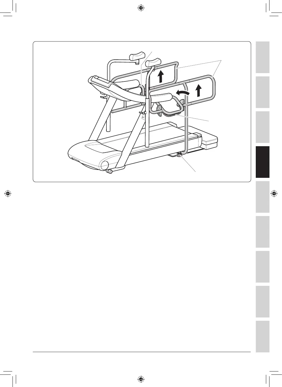 Zu Einstellung der Höhe der unteren Arme (C) der seitlichen Stützen, den Hebel (D)