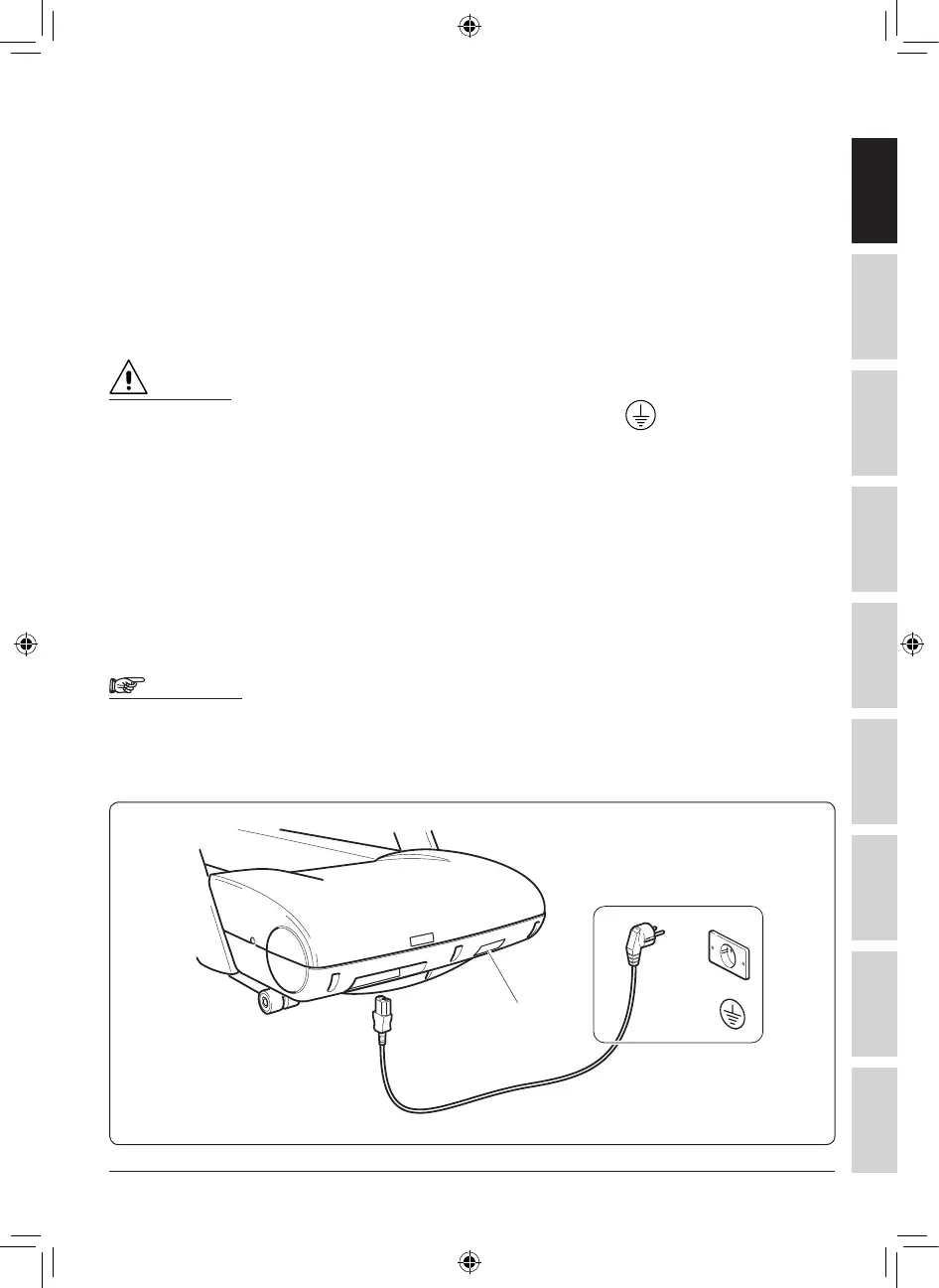 Plug the power cable first into the equipment socket and then into the wall socket.