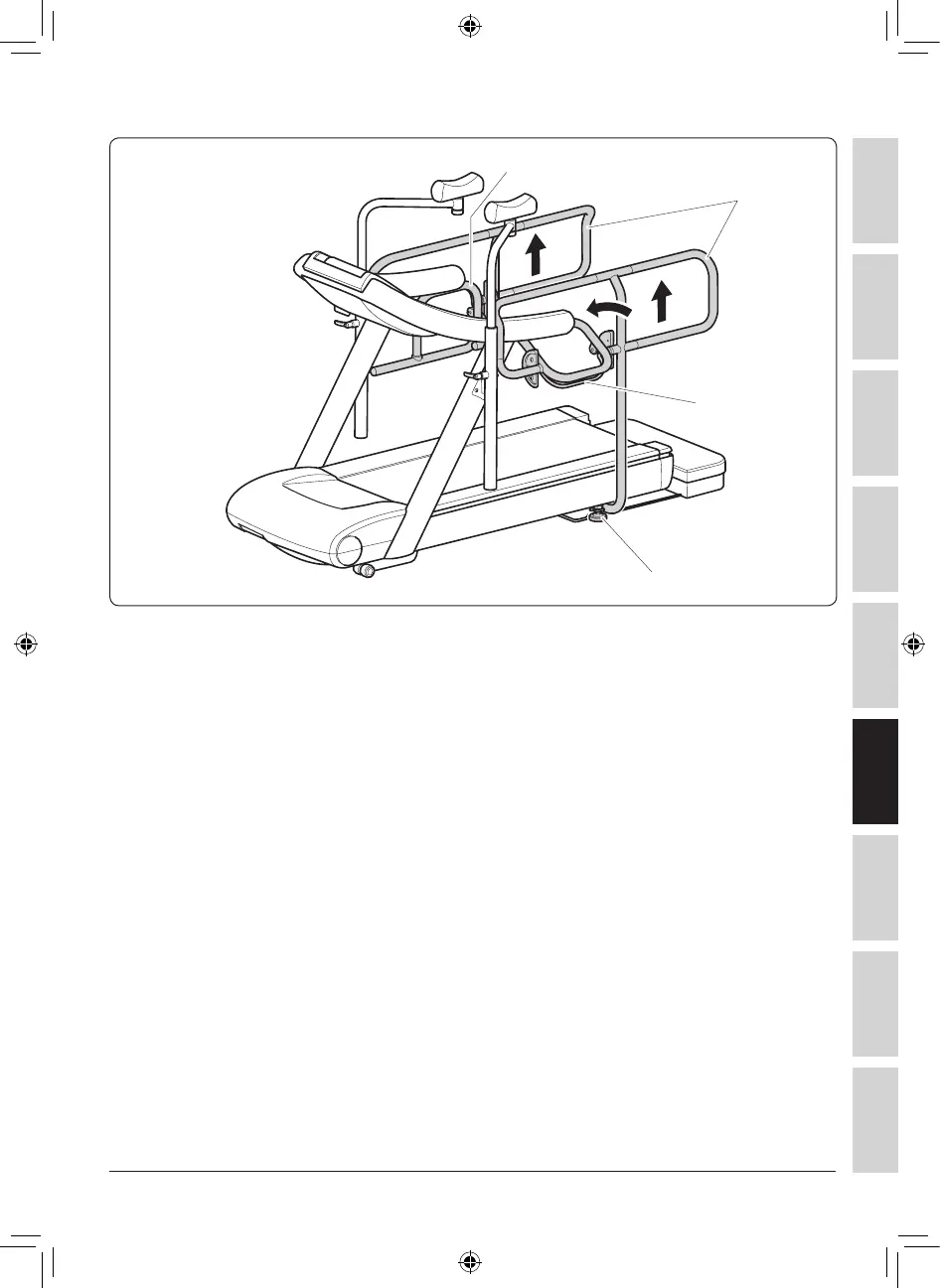 palanca (D) y gire el brazo: éste desciende y gira hacia el interior para que el equipo