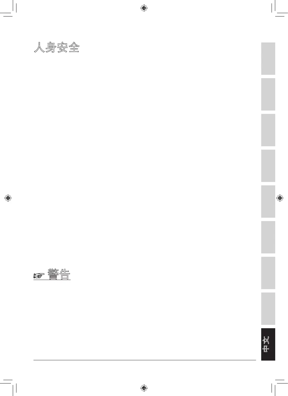 所有部件(例如电源电缆和I(ON)/0(OFF)开关)必须远离液体物质,以免触电。