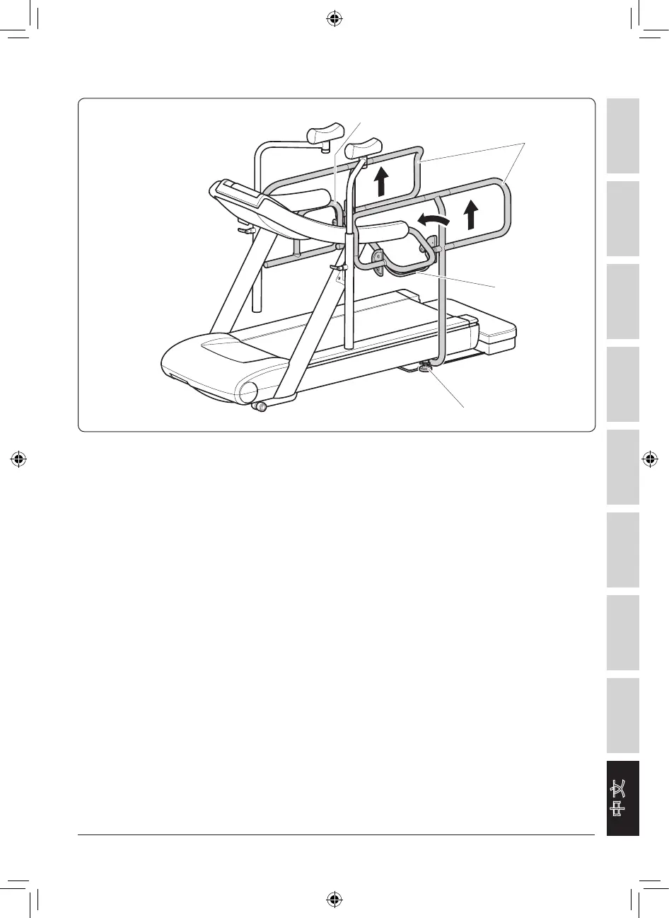 为了调整侧面支撑的下悬臂(C)的高度,按压操控(D)并且转动悬臂;除了降低它,