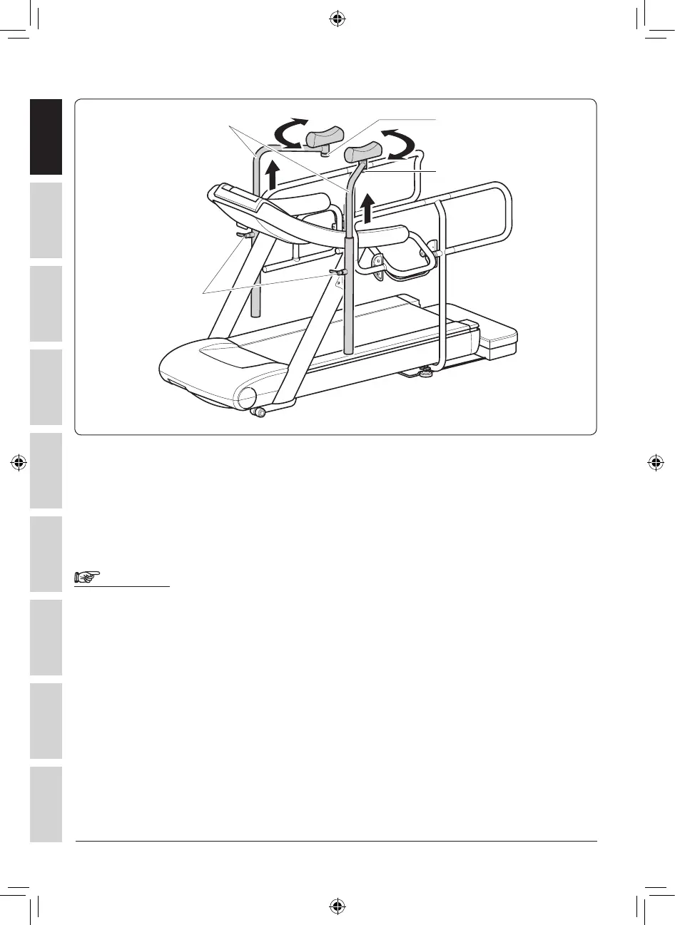 To adjust the brachial supports in height (F) use the lever (G); to rotate the lever