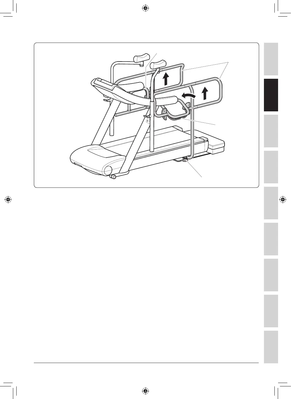 Per regolare l’altezza dei bracci inferiori (C) dei supporti laterali, premere la leva (D) e
