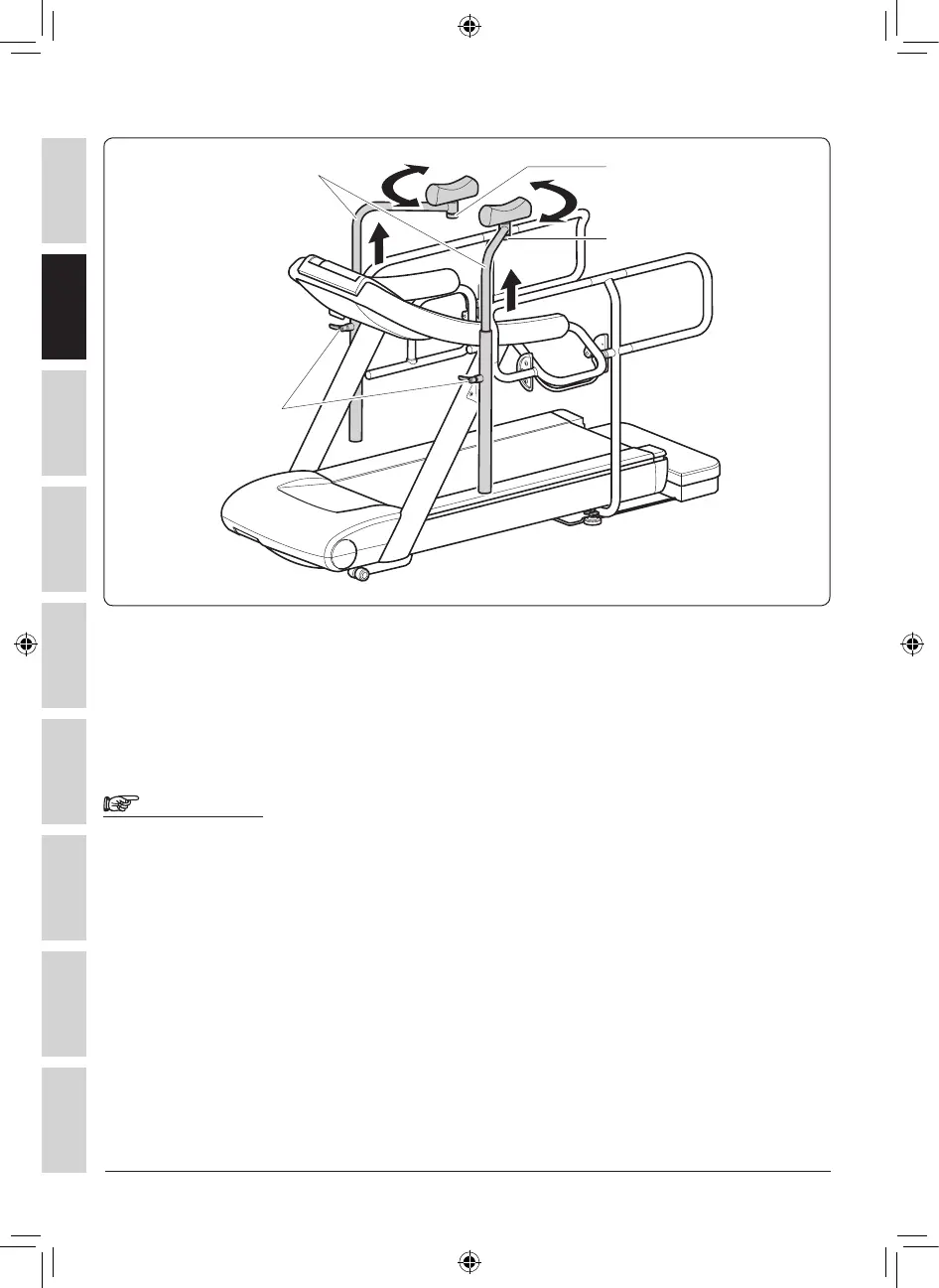 Per regolare in altezza i supporti brachiali (F) agire sulla leva (G); per ruotare la leva
