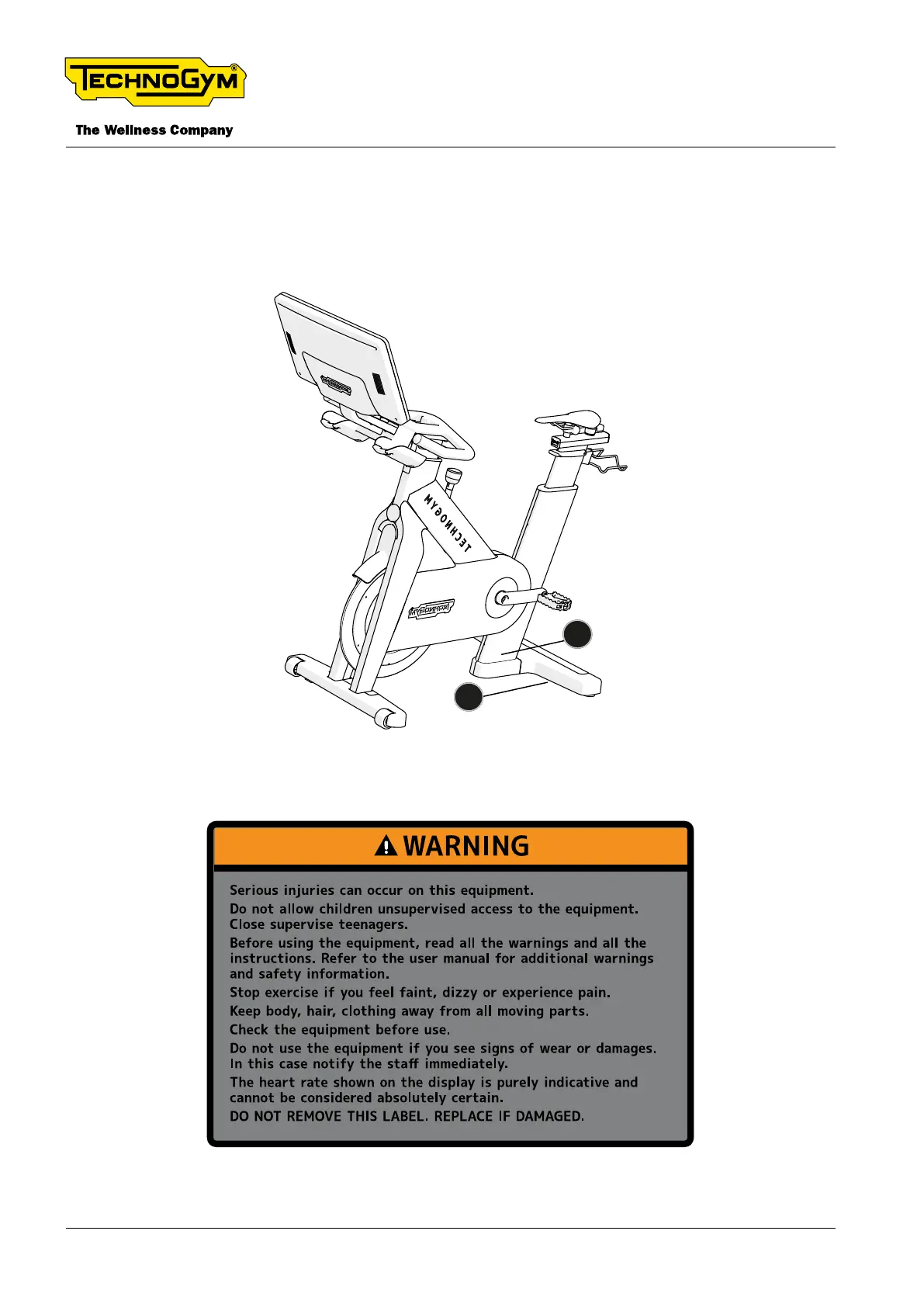 Technogym D93TNL - Position of Labels; Tg Bike with Not Pivoting Display (Old)