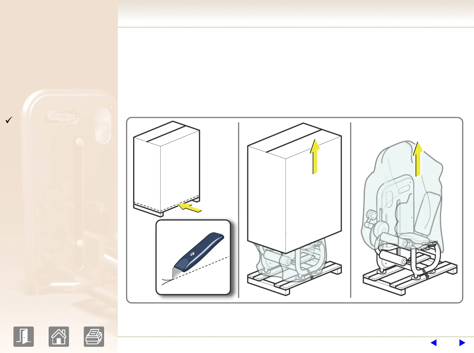 The equipment is supplied on a pallet, to which it is secured by means of straps.