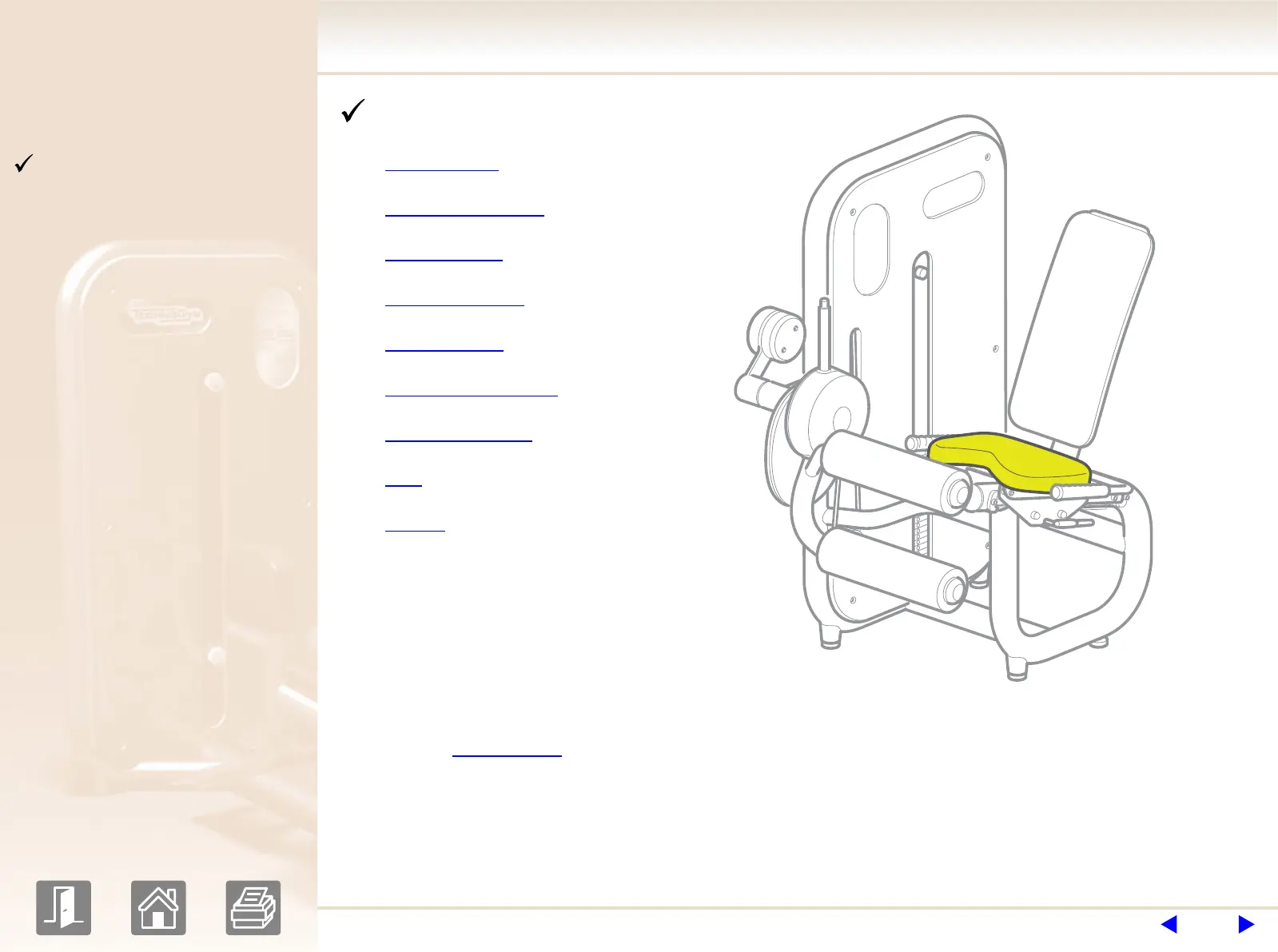 : where the user sits to perform the exercise. Its position can be adjusted