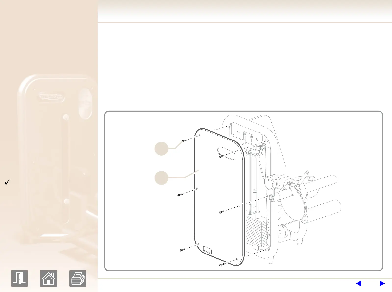 The weight stack panel is attached to the frame with 6 screws.