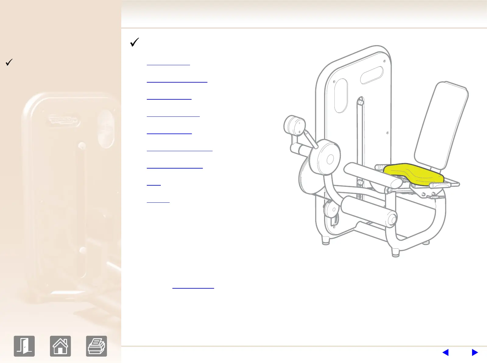 : where the user sits to perform the exercise. Its position can be adjusted