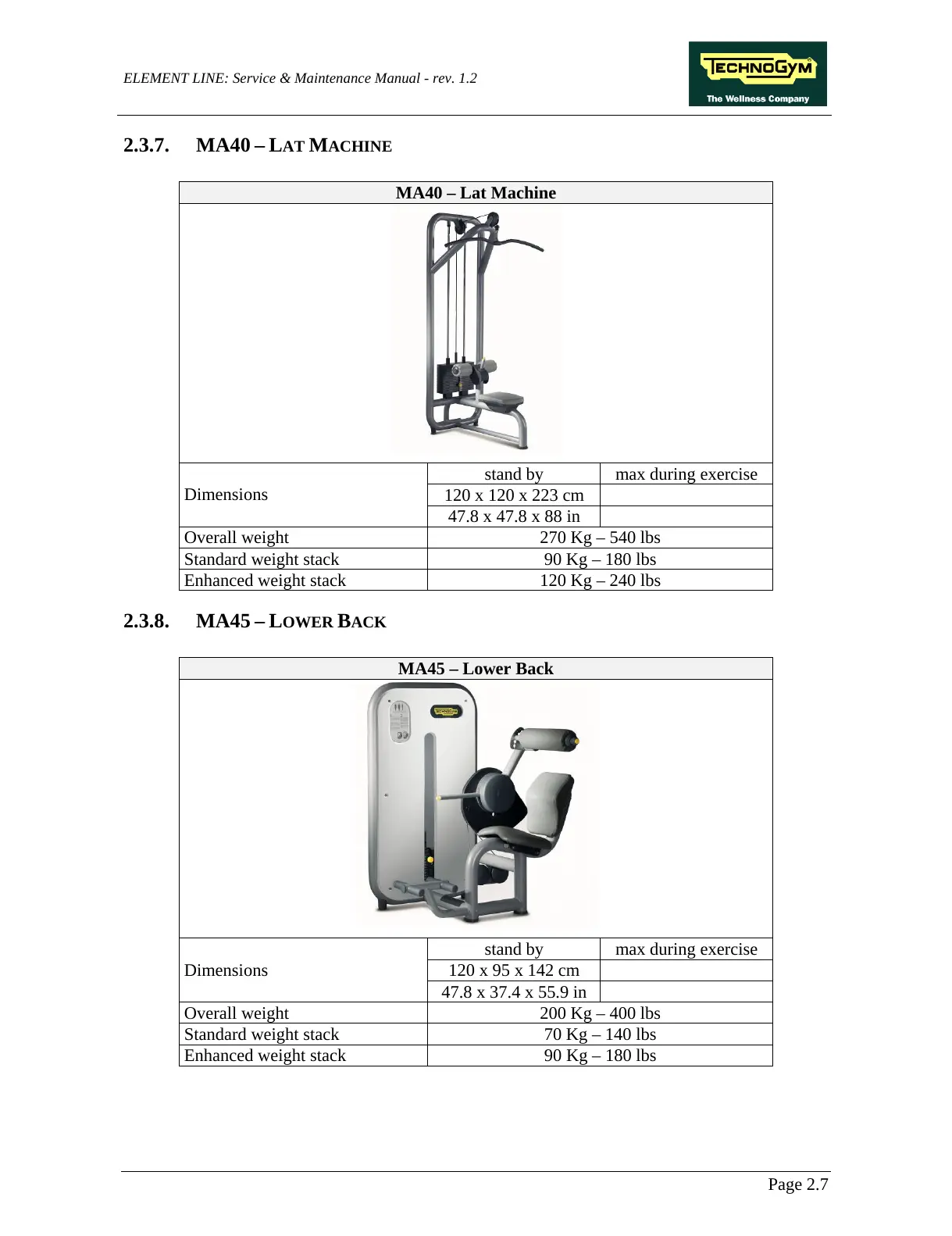 ELEMENT LINE: Service & Maintenance Manual - rev. 1.2
