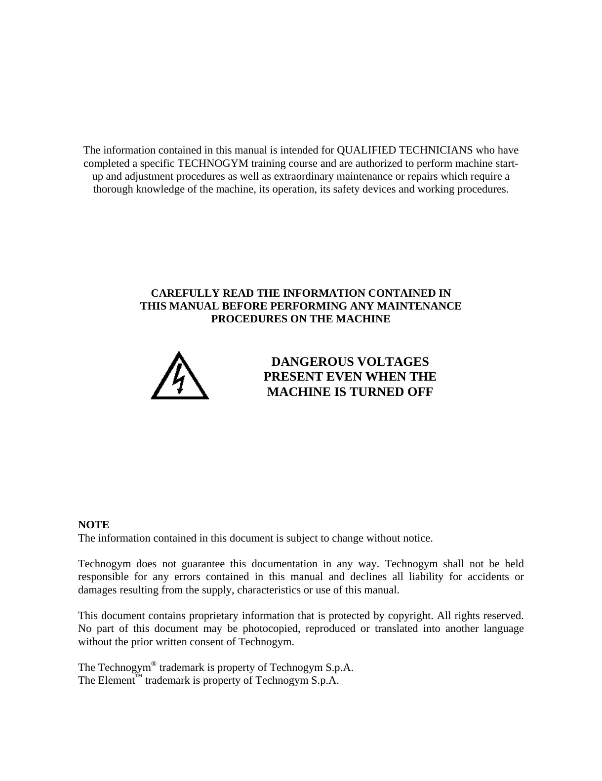 Technogym does not guarantee this documentation in any way. Technogym shall not be held