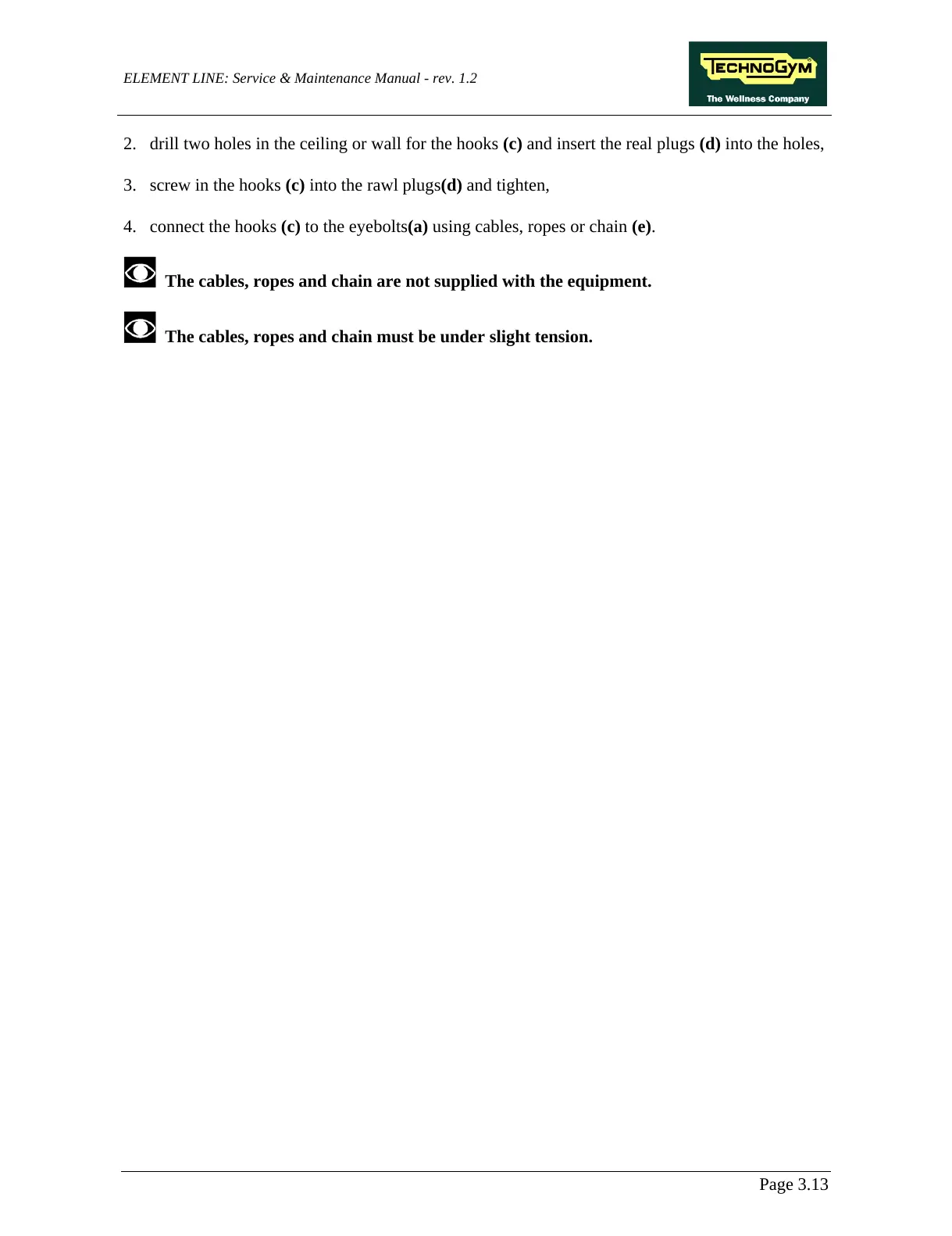 The cables, ropes and chain must be under slight tension.