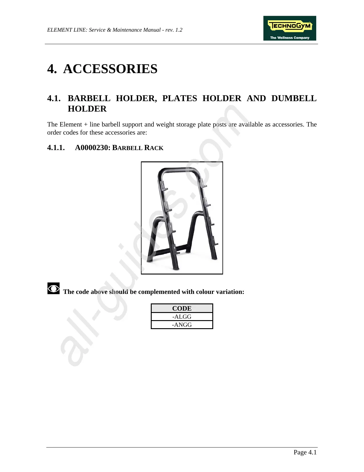 4.1. BARBELL HOLDER, PLATES HOLDER AND DUMBELL