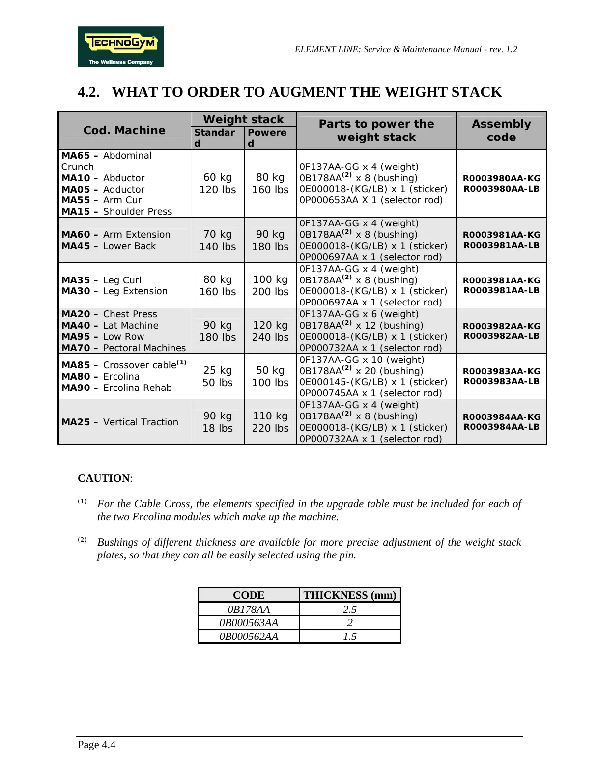 4.2. WHAT TO ORDER TO AUGMENT THE WEIGHT STACK