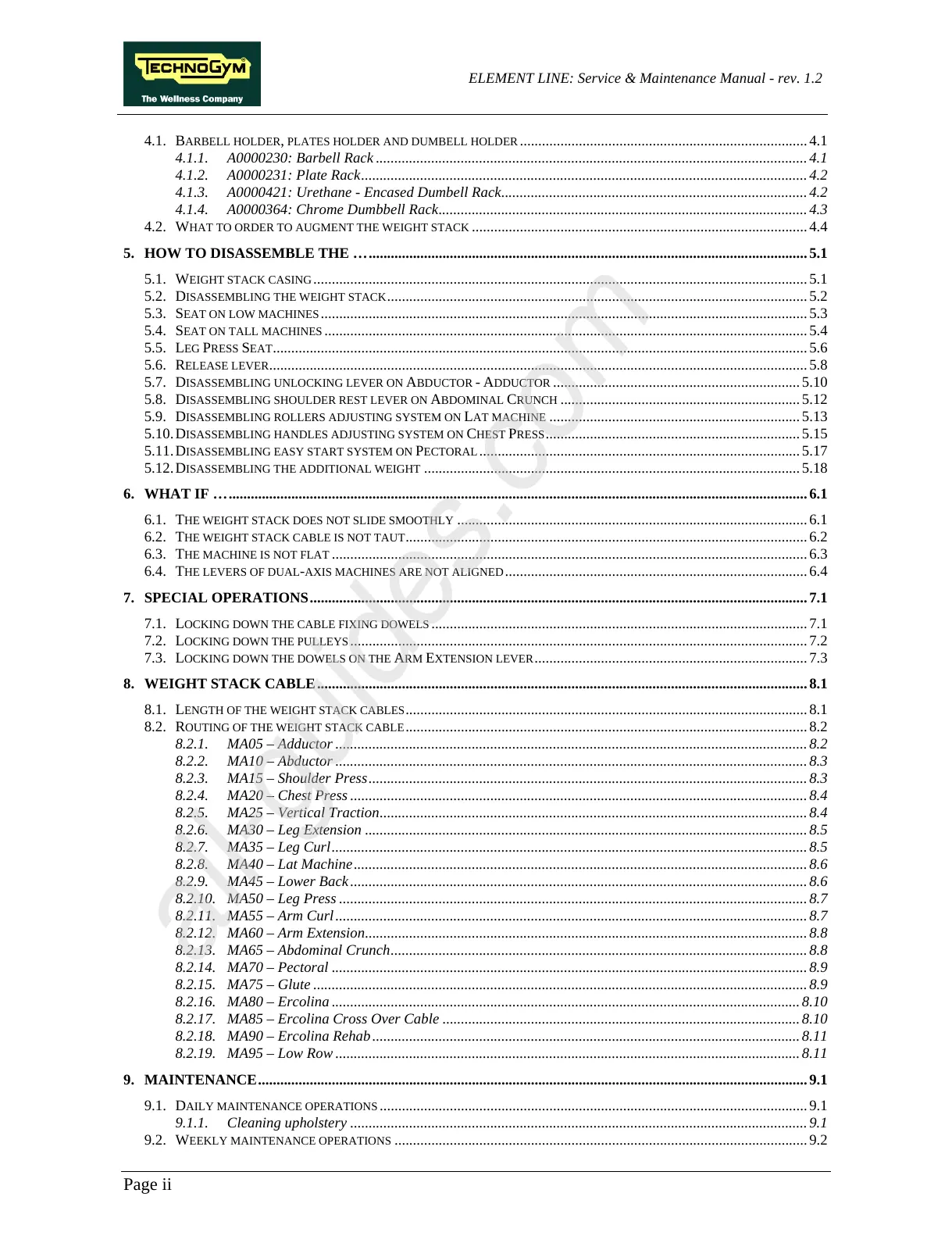 8. WEIGHT STACK CABLE.....................................................................................................................................8.1