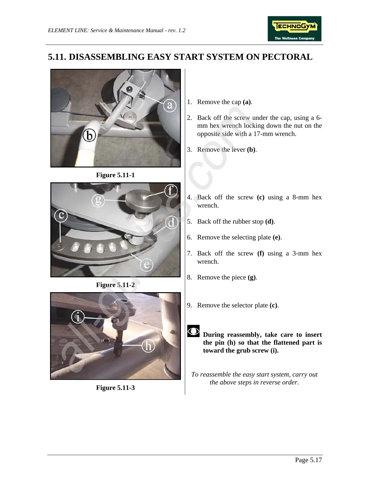 7. Back off the screw (f) using a 3-mm hex