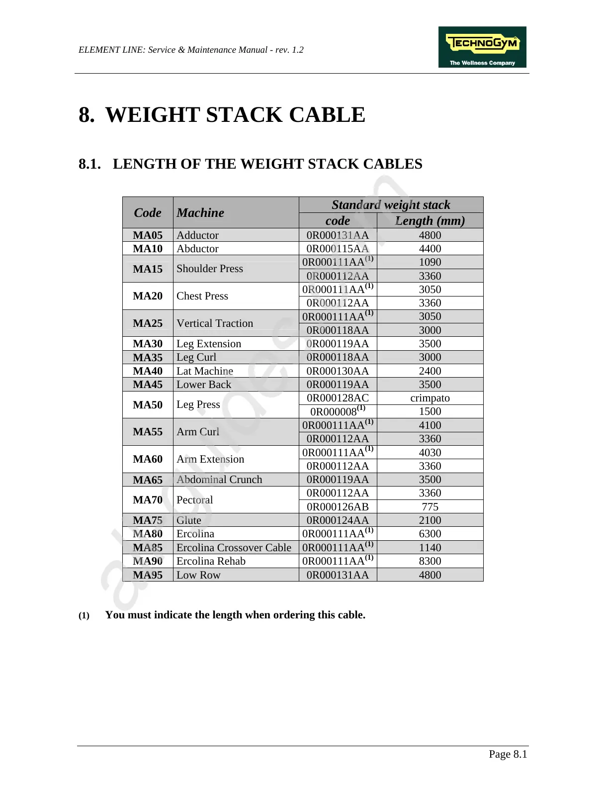 8.1. LENGTH OF THE WEIGHT STACK CABLES