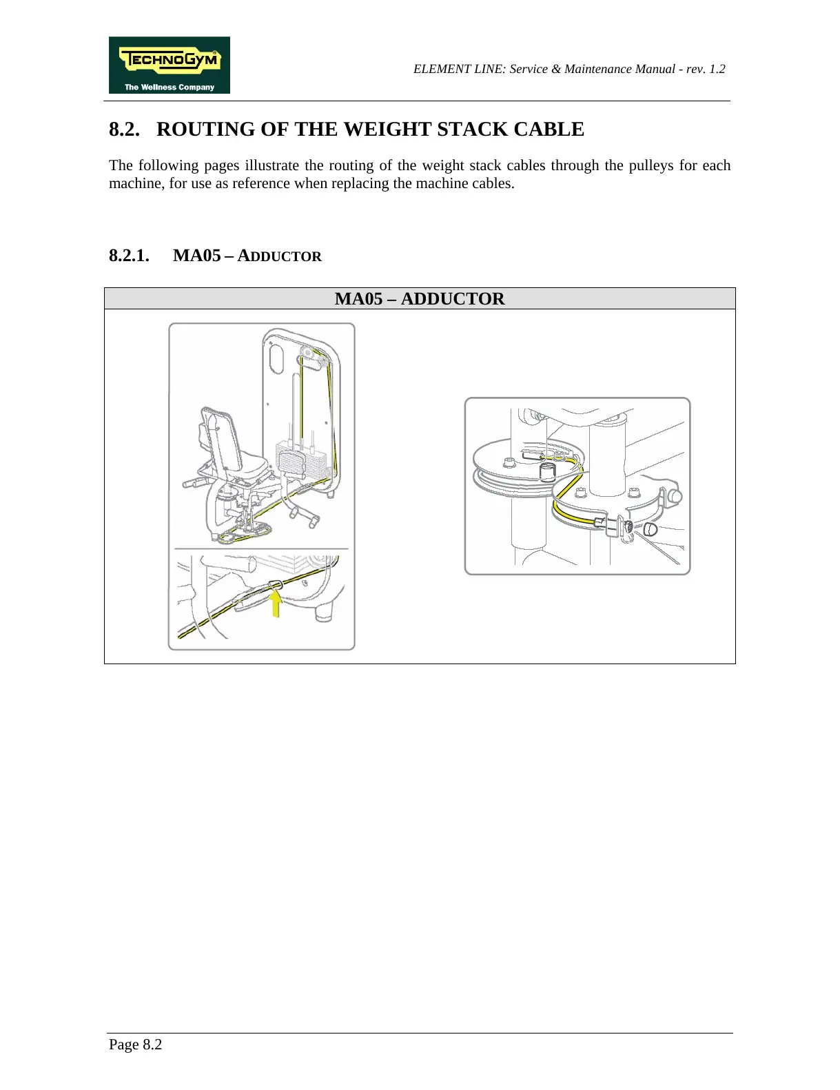 Technogym Element MA05 - Routing of the Weight Stack Cable; MA05 - Adductor