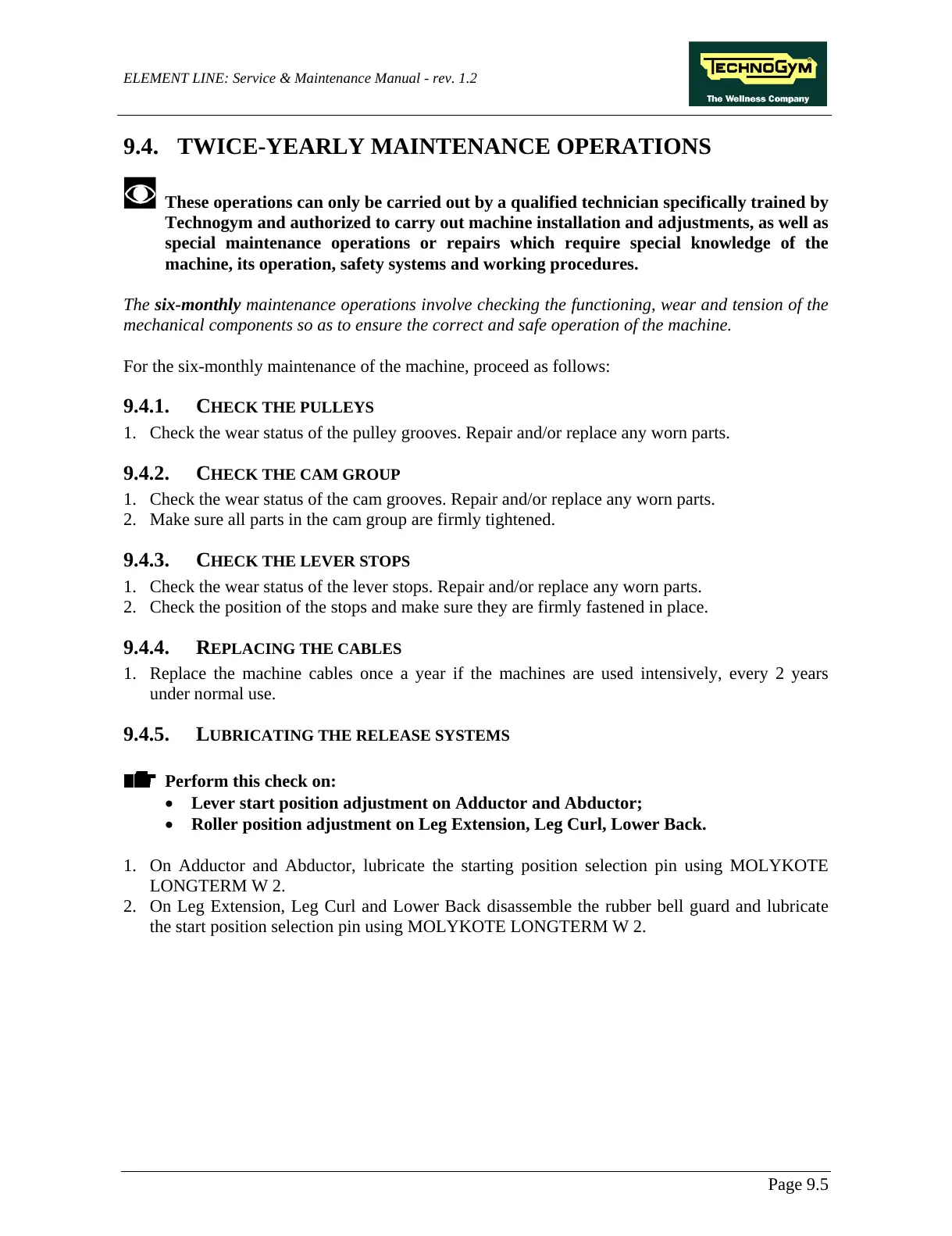9.4. TWICE-YEARLY MAINTENANCE OPERATIONS