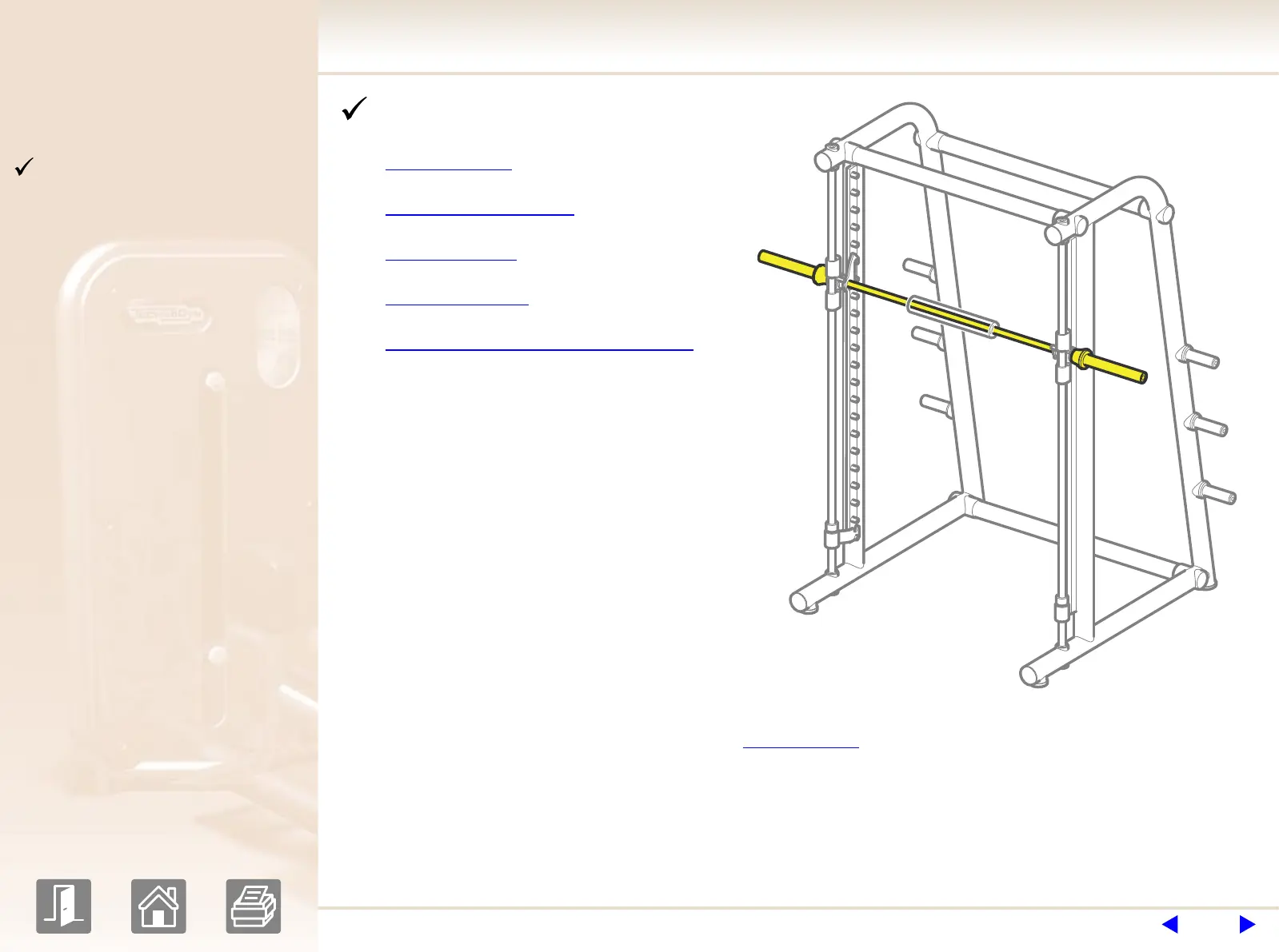 Barbell: moves up-and-down on the guide rods and provides the exercise workload.
