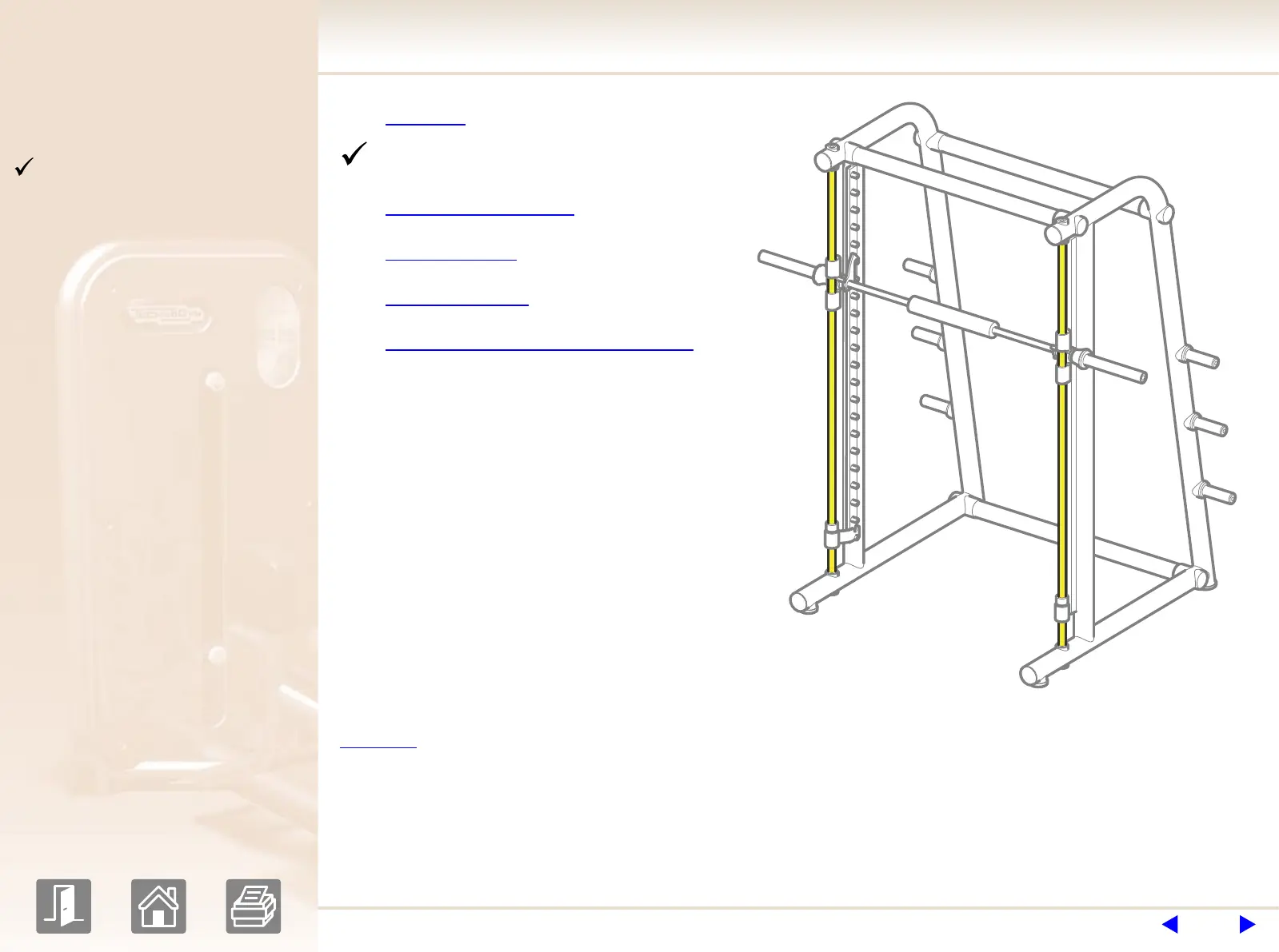 Barbell: moves up-and-down on the guide rods and provides the exercise workload.