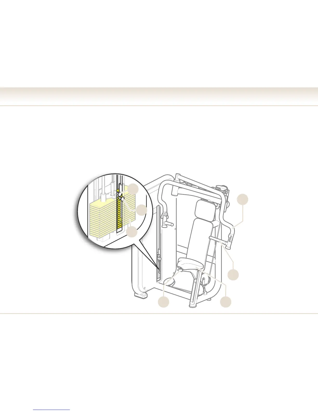 Weight stack (E): the exercise levers, operated by the user, move the weights along two guides by means of a cable. A pin (F) is used